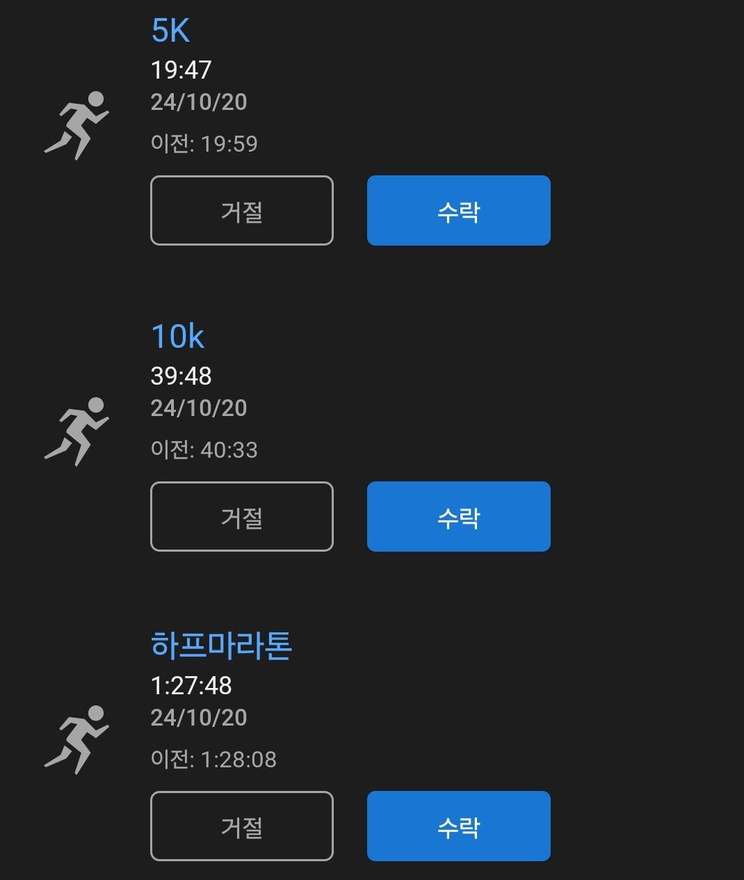 5km, 10km, 하프마라톤 개인 최고기록 동시 달성