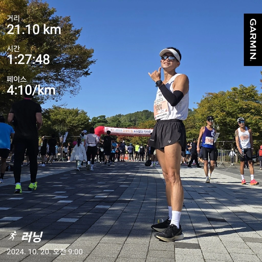내 시계는 21km를 뛰었다고 표시하고 있었다.