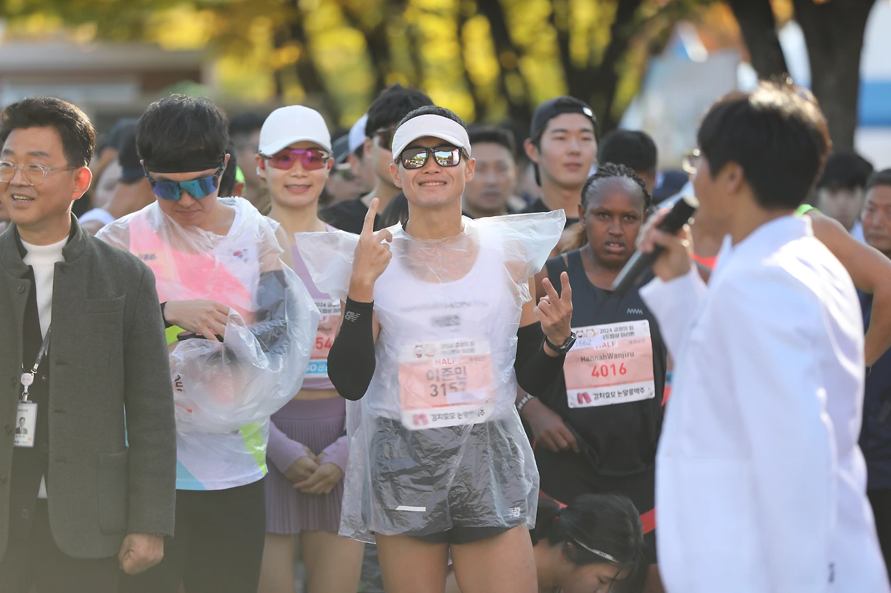 그리고 마라톤 MC는 계속해서 "주로가 미끄러우니 안전하게 달리세요!"라고 강조했다.