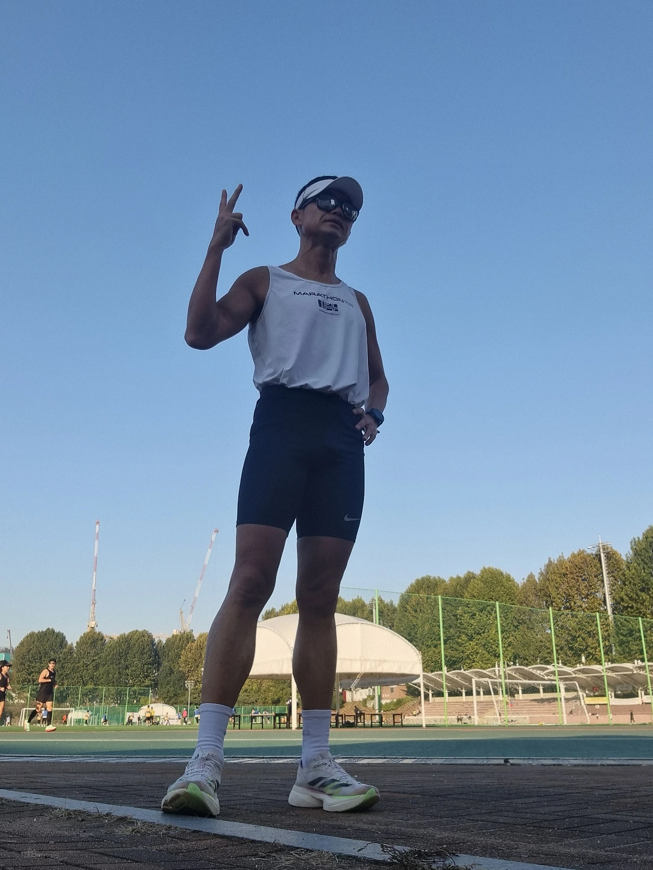 대회 복장 장착하고...처음에 신발이 문제다 싶었는데