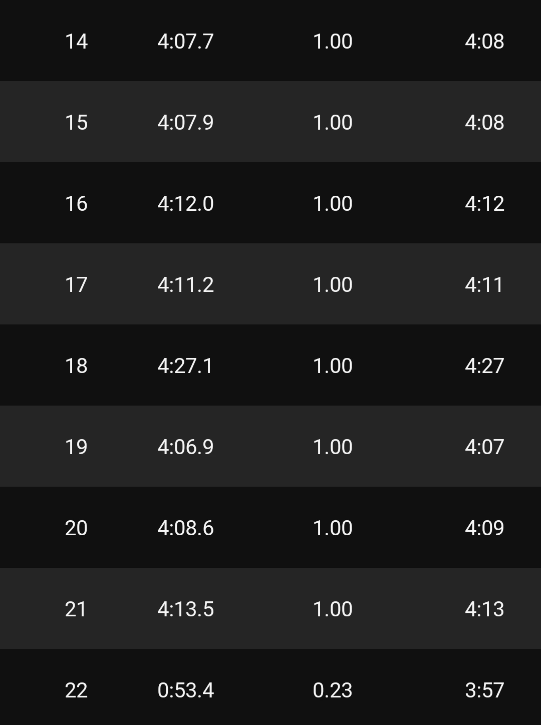 12km 지점에서 오른쪽 허벅지에서 살짝 경련이 느껴졌다.