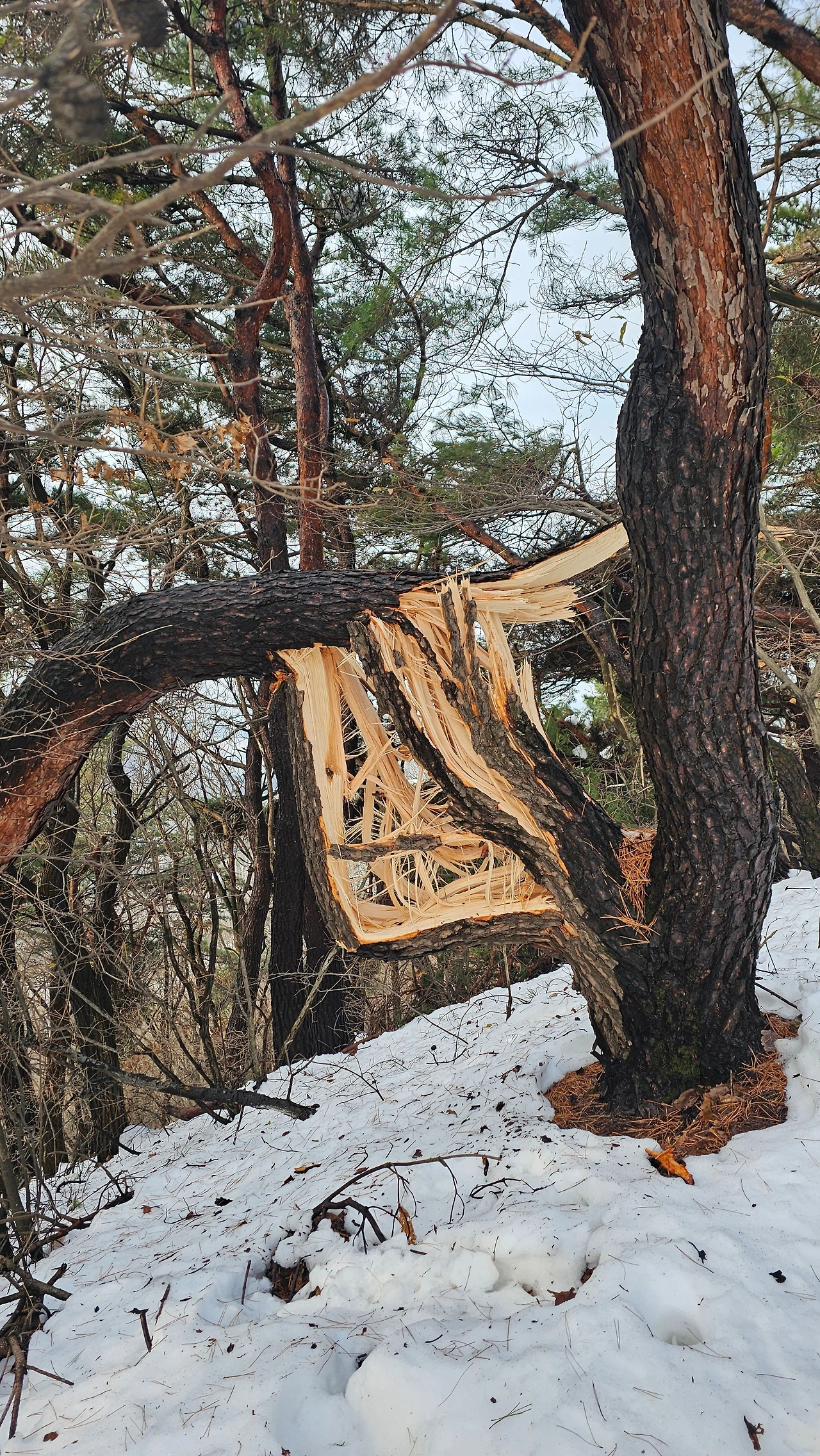 무게를 이기지 못한 나무는 몇십 년 지켜온 그곳에 쓰러져 긴 생명을 마무리하고 있었다.