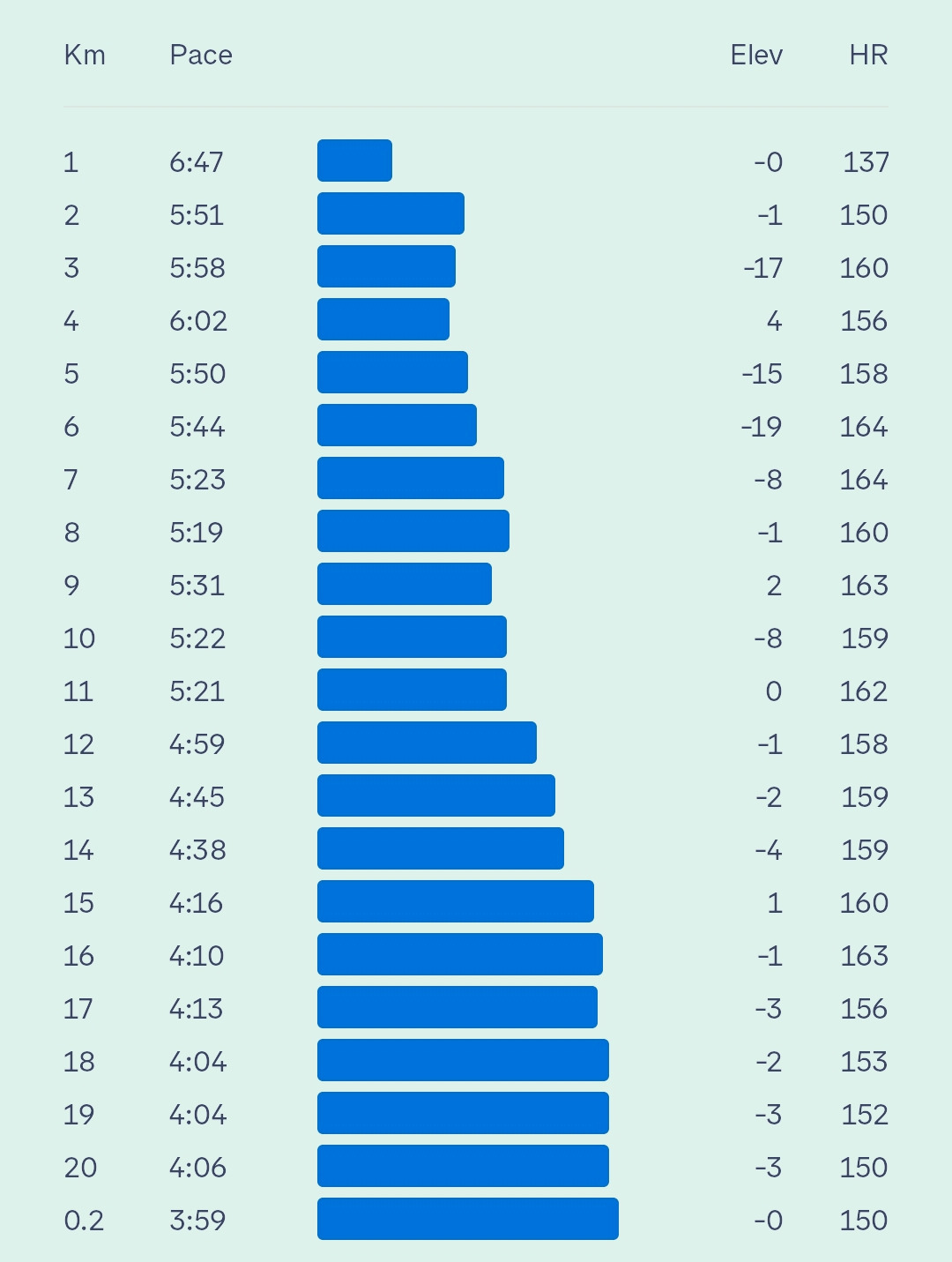 느린 페이스(1km당 5분 20초)로 뛰었다.
