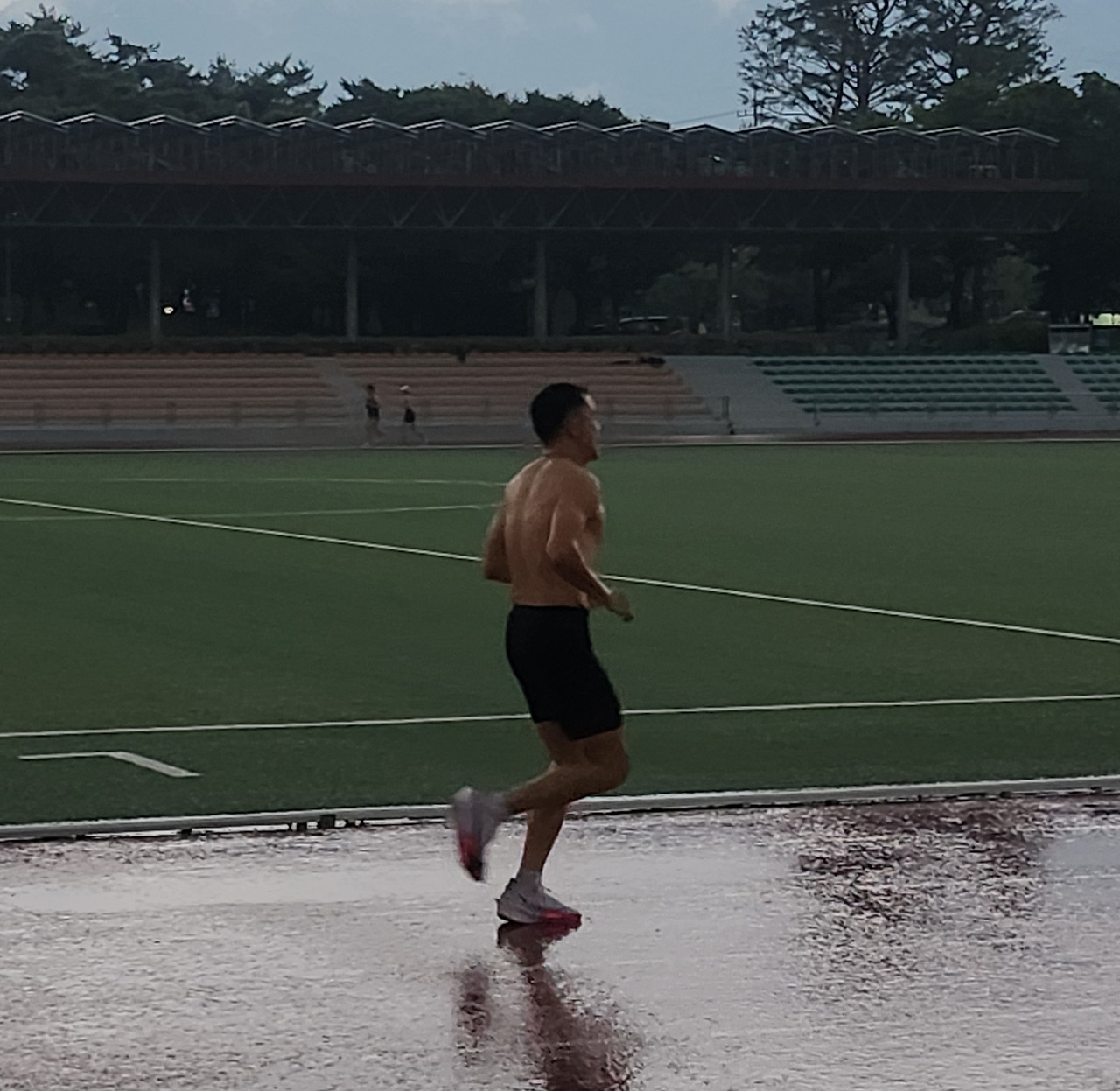 며칠 전에 폭우가 내리는 트랙을 뛰었고