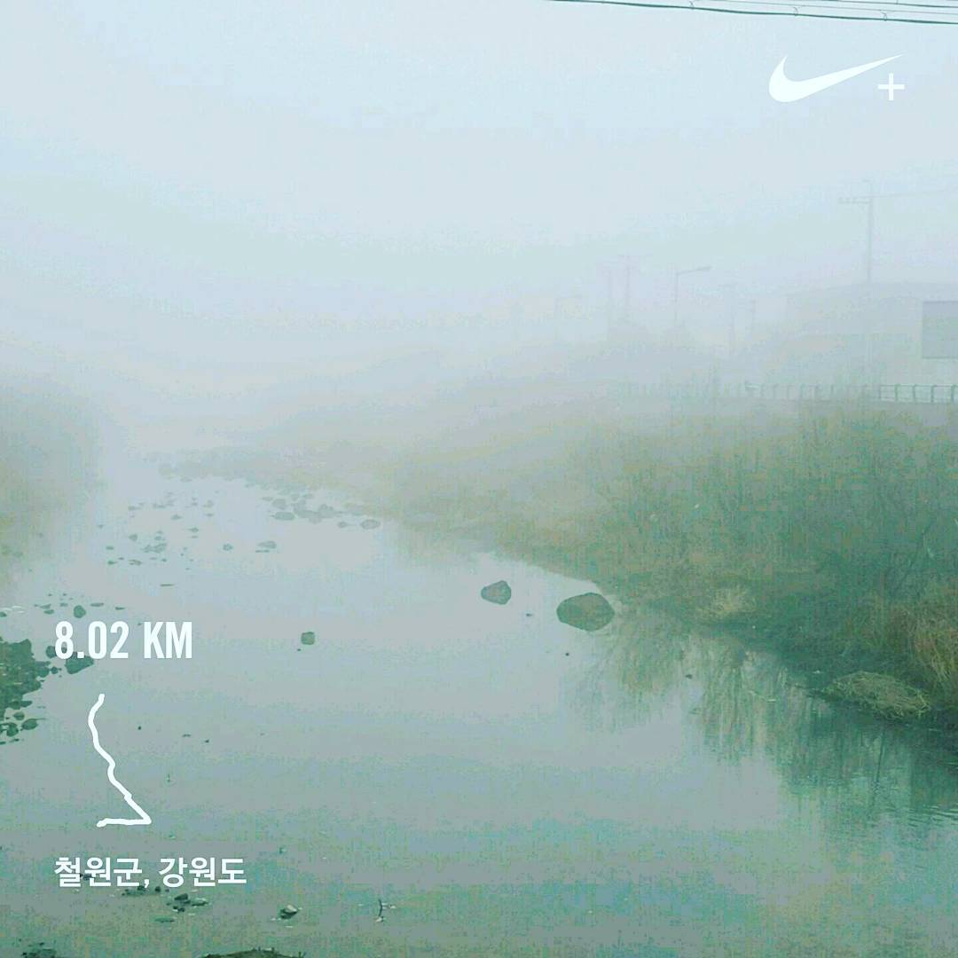 며칠 전에 비를 맞으며 뛴 적이 있다.