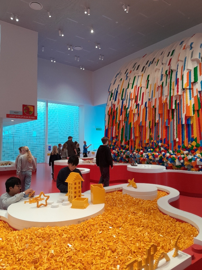 레고하우스에 방문한 사람들은 레고를 좋아해서 여기까지 돈 내고 찾아왔을 테니 신나는 건 당연하다. 덴마크 레고하우스는 단순히 브릭 전시를 감상하고 레고 조립도 조금 체험해 보는, 그런 곳이 아니었다. 일단 체험할 수 있는 콘셉트 자체가 무척 다양하다. 물고기 디자인, 자동차 디자인, 나만의 레고 꽃 화원 만들기, 레고 코딩으로 꿀벌을 도와주고 자연 돌보기, 쓸모없는 브릭들로 새로운 작품을 창조해 보기, 독창적인 캐릭터 만들기 등등... 내가 만든 모든 작품은 바코드를 찍으면 실시간으로 화면에 전송되어 살아 움직인다.