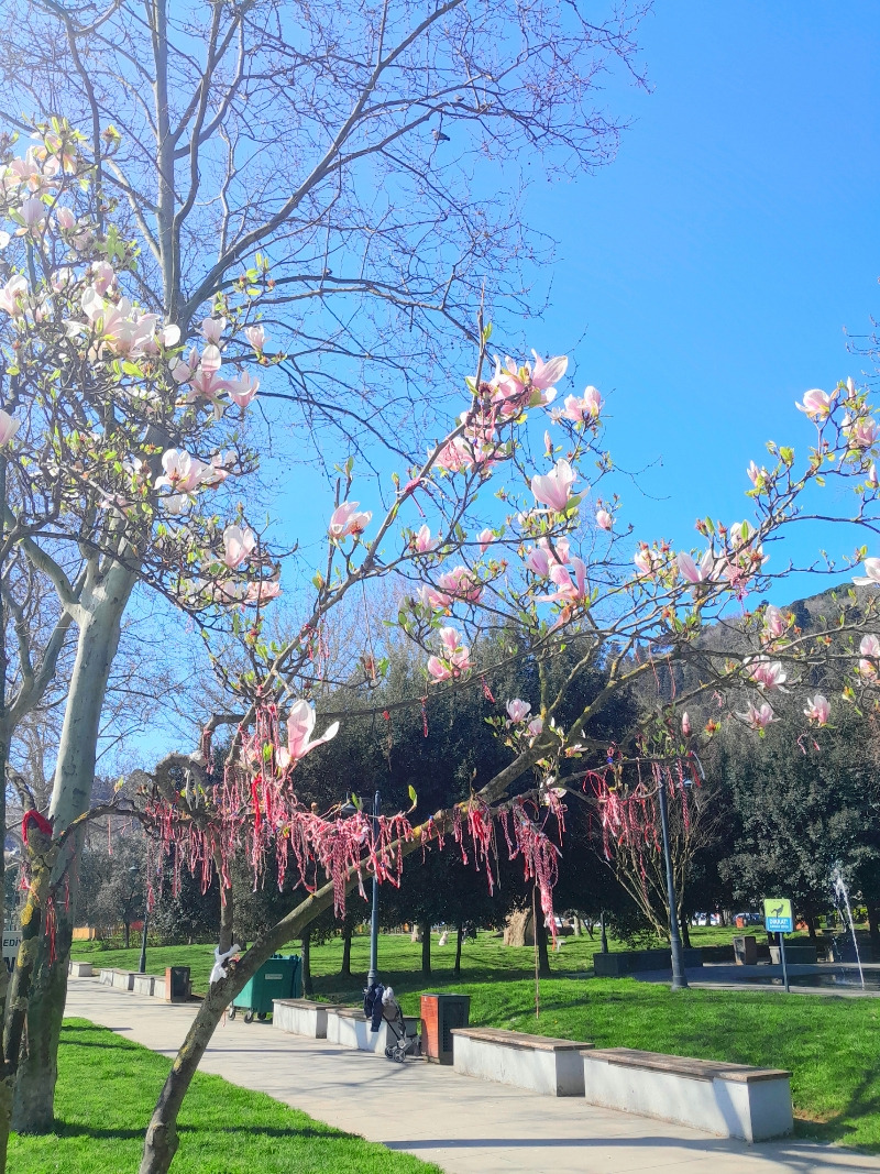 멀리서 봤을 땐 장식인가 싶었는데, 가까이서 살펴보니 소원 나무였다.