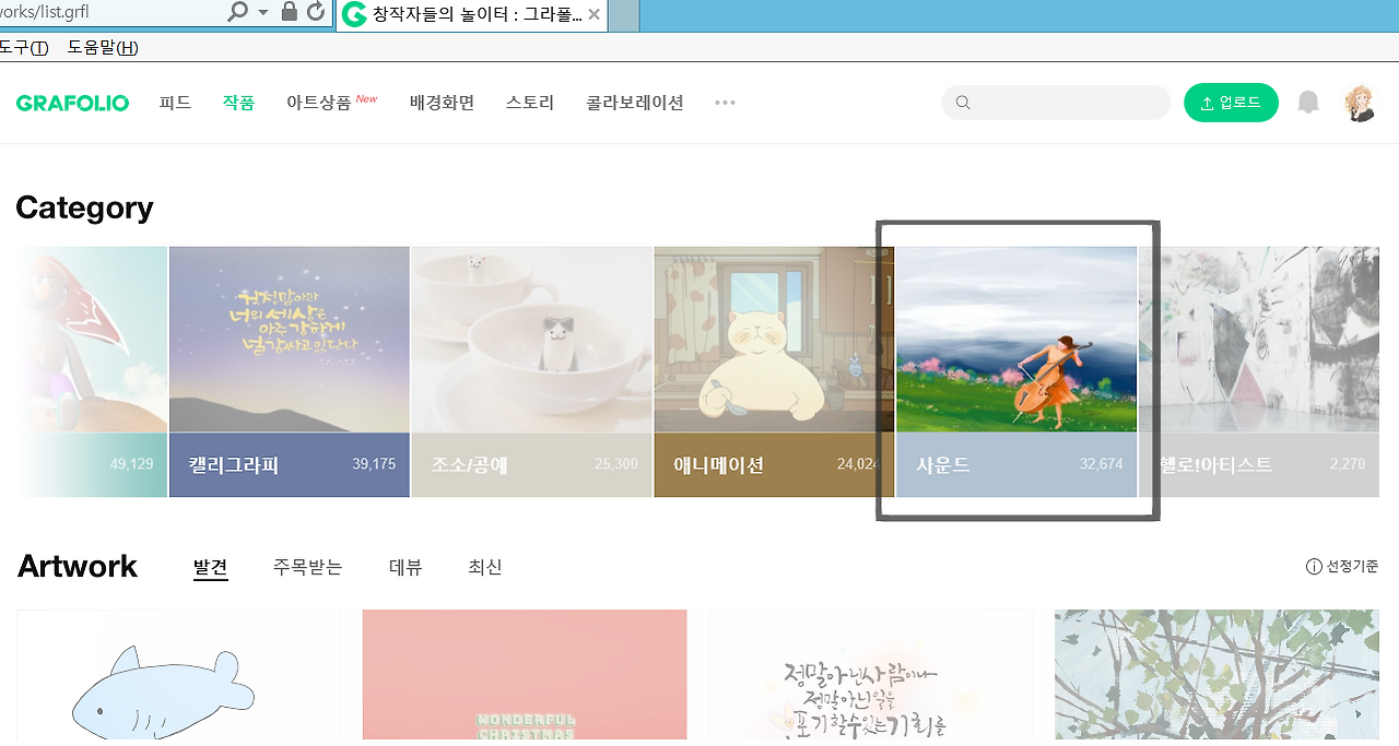네이버 그라폴리오 메인 카테고리에