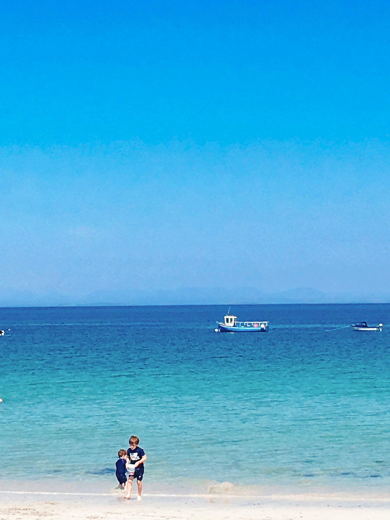 바다와 하늘 모두 오염하나 없는 새파란 자연의 색 그 자체였고 그런 자연 속에서 해맑게 놀고 있는 두 어린 소년마저 참 귀여웠다.