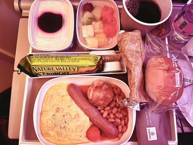 이륙후 얼마 안돼서 받은 아침식사. 아침이라 그런지 간단한 식사였다.