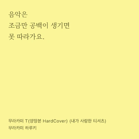 잘하고 싶은 일이 있다면 공백이 생기지 않도록, 공백기가 길어져 나중에 못 따라가는 일이 생기지 않도록 갈고닦으며 버티는 노력이 필요합니다. 귀찮은 일이지만, 그 하루하루가 이어져 결과물이 됩니다. 음악에, 티셔츠에 진심이었던 하루키처럼 말이죠.