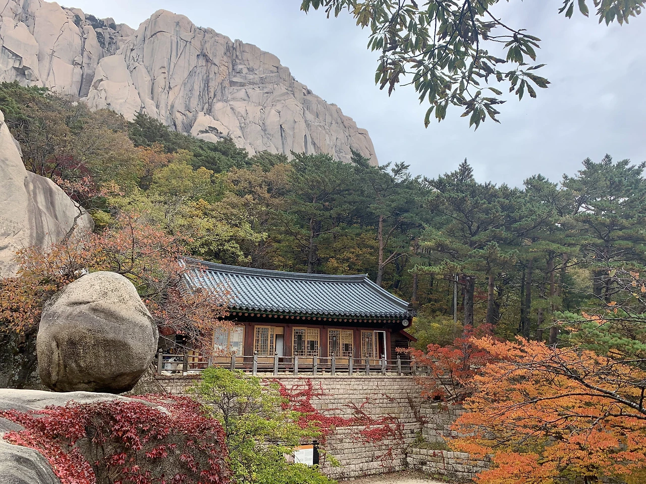신흥사의 부속 암자인 계조암에는 동굴법당을 만들어 부처님을 모시고 있다. 엄마와 삼배를 하고 나서는 길에 마침 사시예배가 시작되어 다시 기도를 드리게 되었다. 사시불공이 처음인 나는 들고 나기를 반복하다 삼성각 계단에 앉아 먼 산만 바라보고, 흔들바위에서 사진을 찍는 등산객들을 구경했다.
