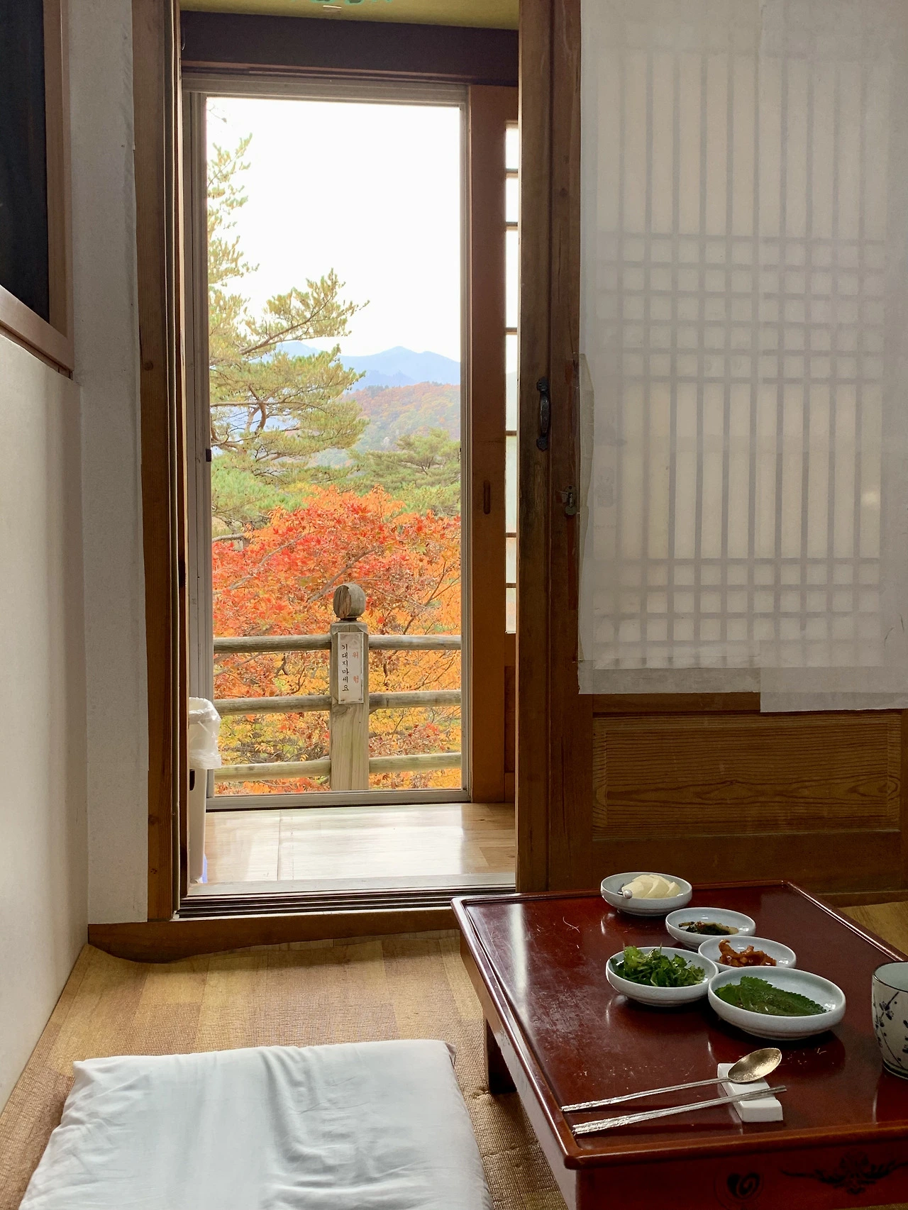 7시도 되지 않은 이른 아침, 펜션 근처 해장국 가게는 산행을 준비하는 사람들로 북적였다. 가을 단풍이 한창이니, 다들 부지런히 산을 오르려 든든히 배부터 채우는 것일 터다. 엄마와 나도 뜨끈한 국물로 속을 데우고 서둘러 길을 나섰다.