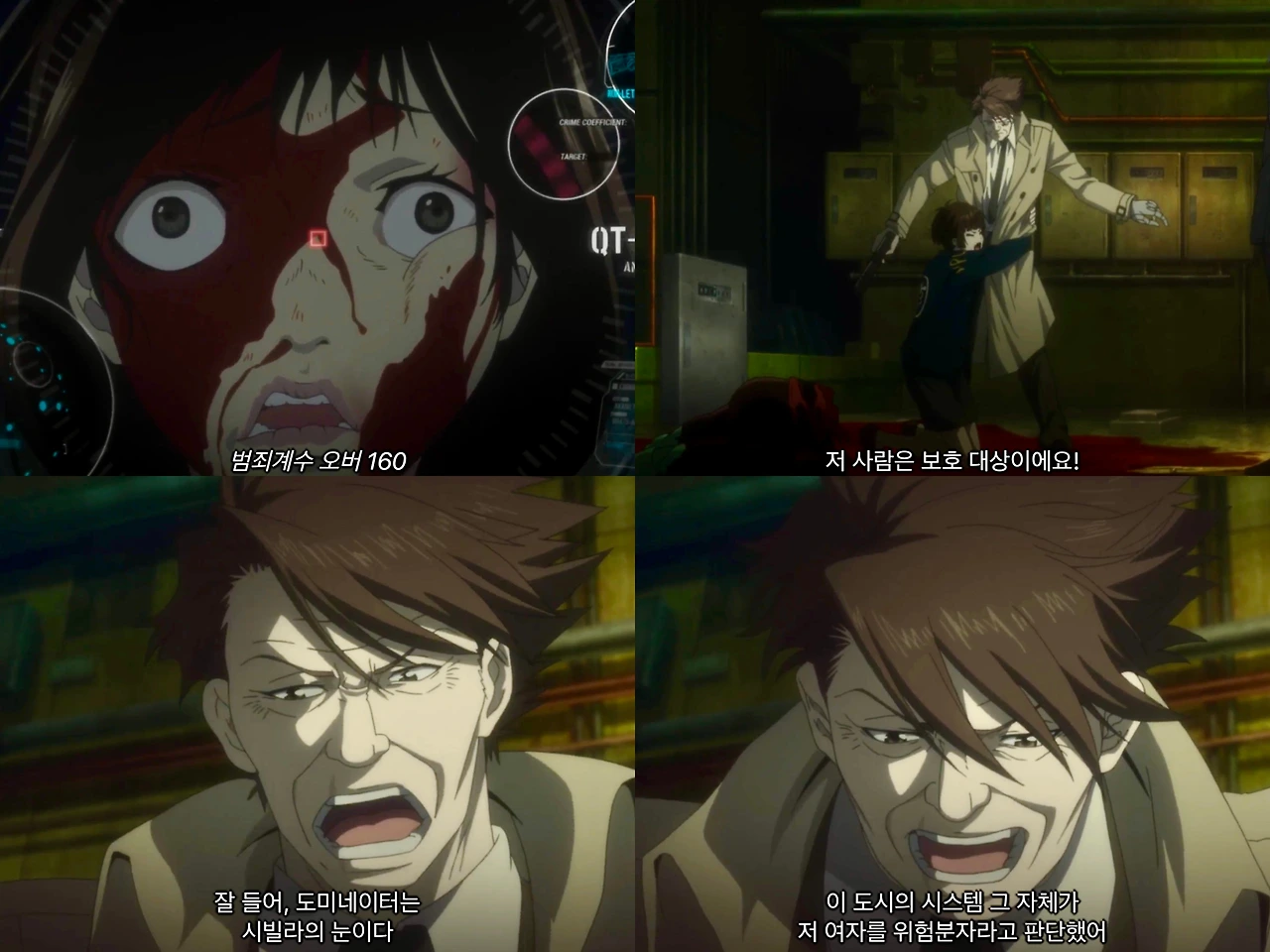 <PSYCHO-PASS>는 완벽한 통제 시스템이 과연 정의로운지, 인간의 불완전함을 배제하는 사회에서 진정한 행복이 가능한지 묻는다.