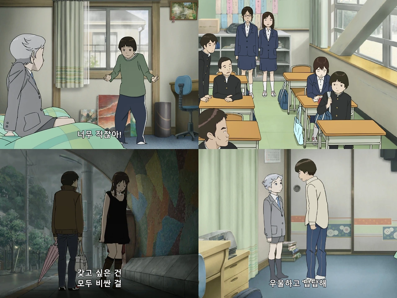 마코토가 엄마가 사 준 하늘색 외투를 입고 사오토메를 만나는 마지막 장면은 가족의 회복을 나타낸다. 서로 외면하며 분열되어 있던 가족이 다시금 연결되는 지난한 과정은 묵직한 감동을 준다. 그렇게 가족은 마코토의 또 다른 버팀목이 되었다.