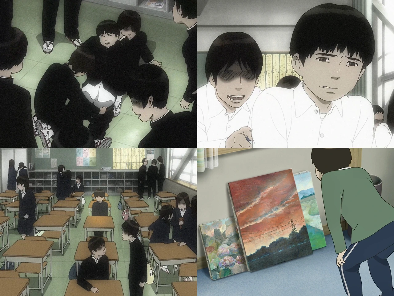 마코토가 자살하기 전의 날들은 모노톤이었다. 집에서도 학교에서도 마코토는 외로웠다. 서로에 대한 이해와 관심이 부족한 가족에게선 온기가 느껴지지 않았고, 학교에서는 동급생들의 악질적인 괴롭힘을 견뎌야 했다.
