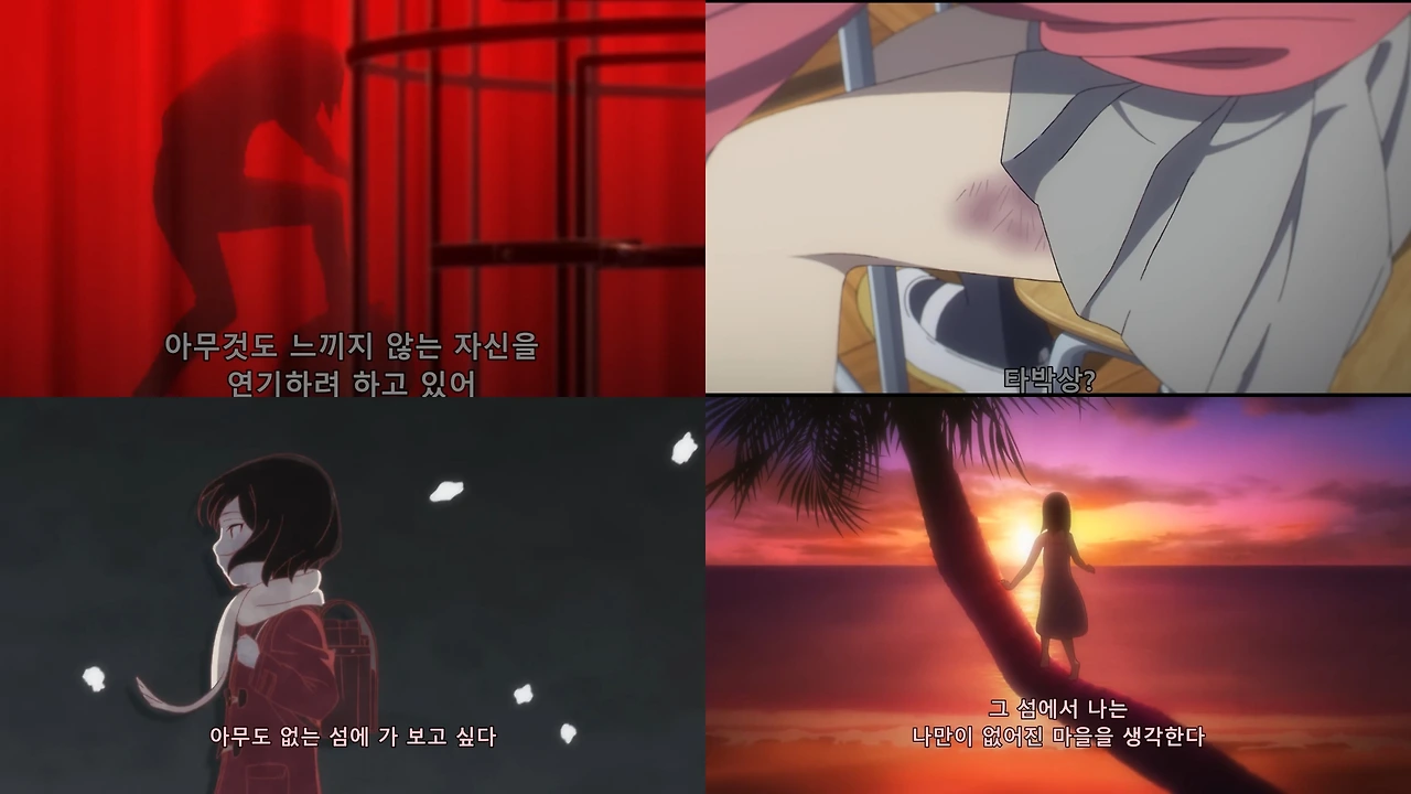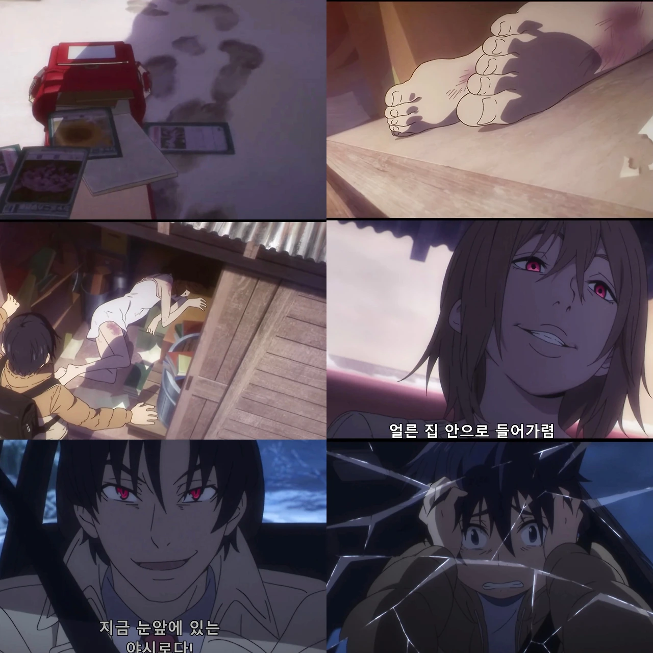 또한 푸른 배경 속에서 카요의 엄마와 야시로의 눈이 붉게 빛나는 연출은 인물들이 가진 폭력성과 위협을 직관적으로 각인시킨다.