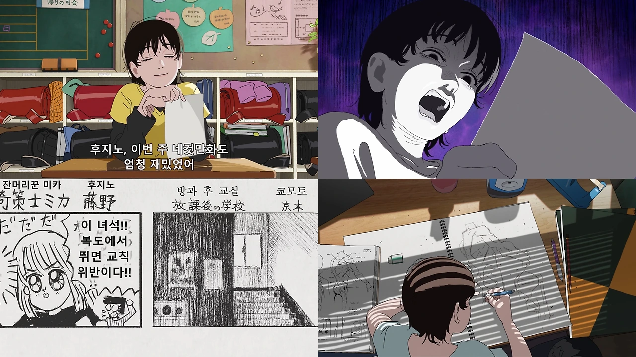 처음 느껴보는 열패감에 밤낮없이 드로잉 연습을 하는 후지노의 모습은 무너져 내리는 자존심을 붙들기 위한 사투처럼 보인다.