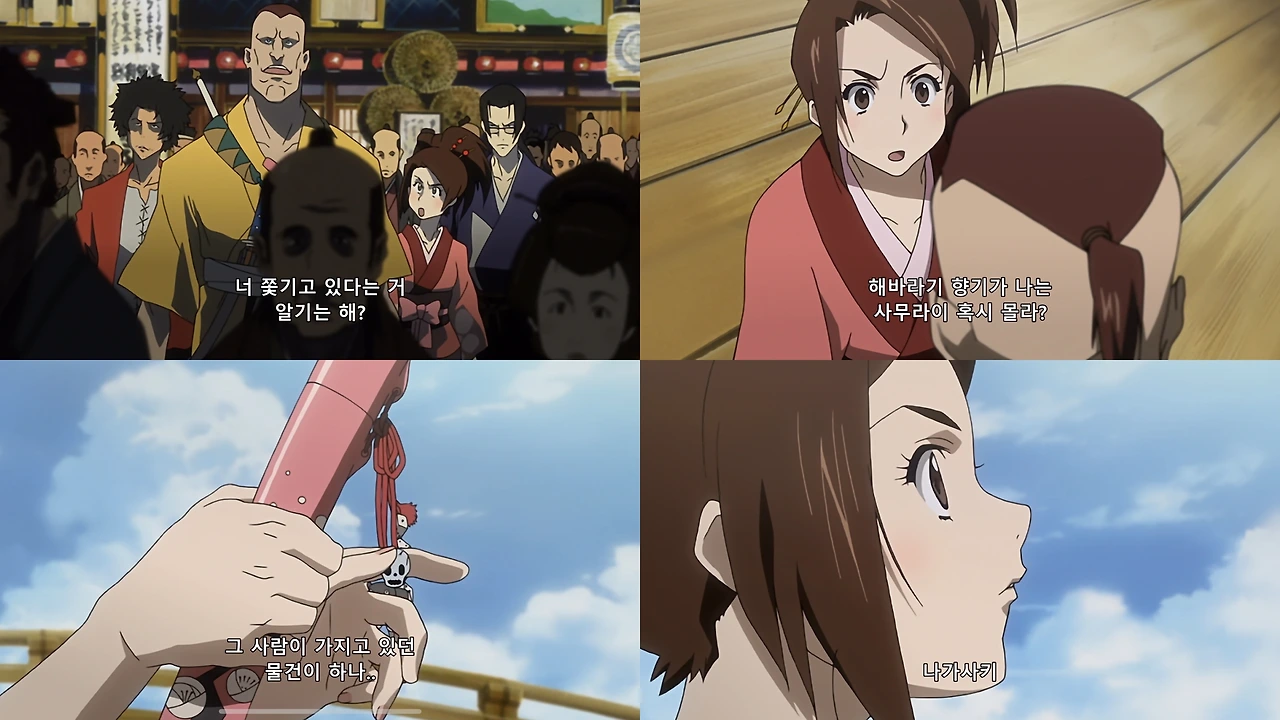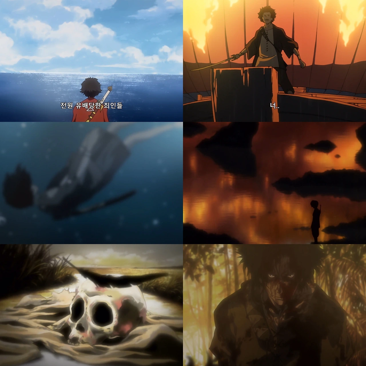 음악은 작품에서 단순한 배경이 아니라 장면과 캐릭터의 감정, 그리고 서사의 무게를 직접적으로 이끄는 장치다. 몇 개의 곡들을 중심으로 작품 속 장면을 살펴보면, <사무라이 참프루>가 ‘음악이 서사를 쓰는 애니메이션’이라는 사실이 더욱 분명해진다.