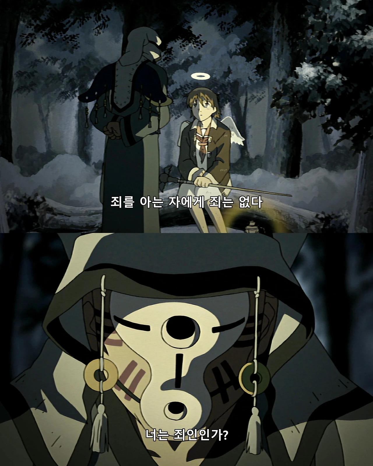 하이바네 연맹의 수장인 와시가 라카에게 던진 ‘죄를 아는 자에게는 죄가 없다. 그렇다면 너는 죄인인가?’라는 화두가 바로 작품 전체를 관통하는 주제가 된다.