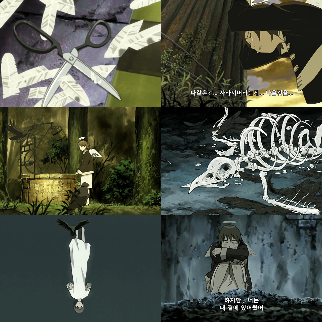 라카는 죽은 새를 통해 고치 속에서 꾼 꿈을 기억해 낸다. 그리고 하늘에서 떨어지던 자신을 까마귀(소중한 존재)가 구하려 했지만, 그 도움을 외면했던 자신의 죄를 깨닫는다.