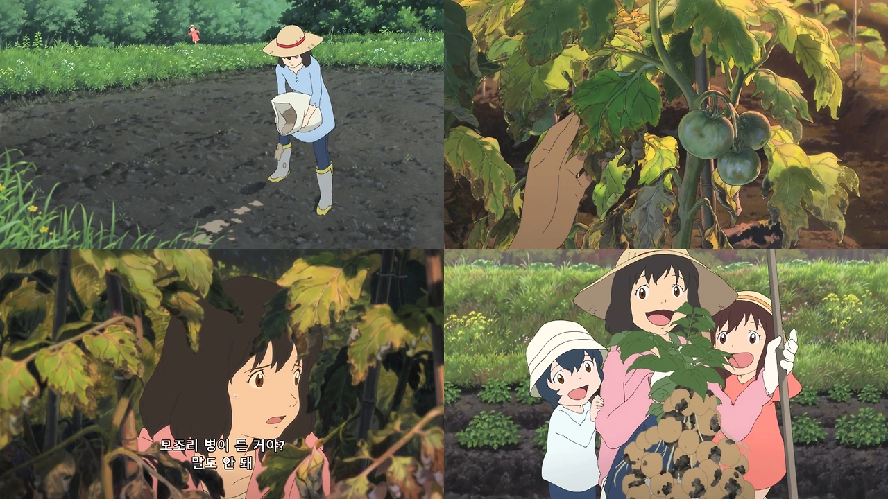 작품은 농사를 지으며 기뻐하고 좌절하는 하나를 통해 육아란 통제가 아닌 인내의 영역임을 보여준다.