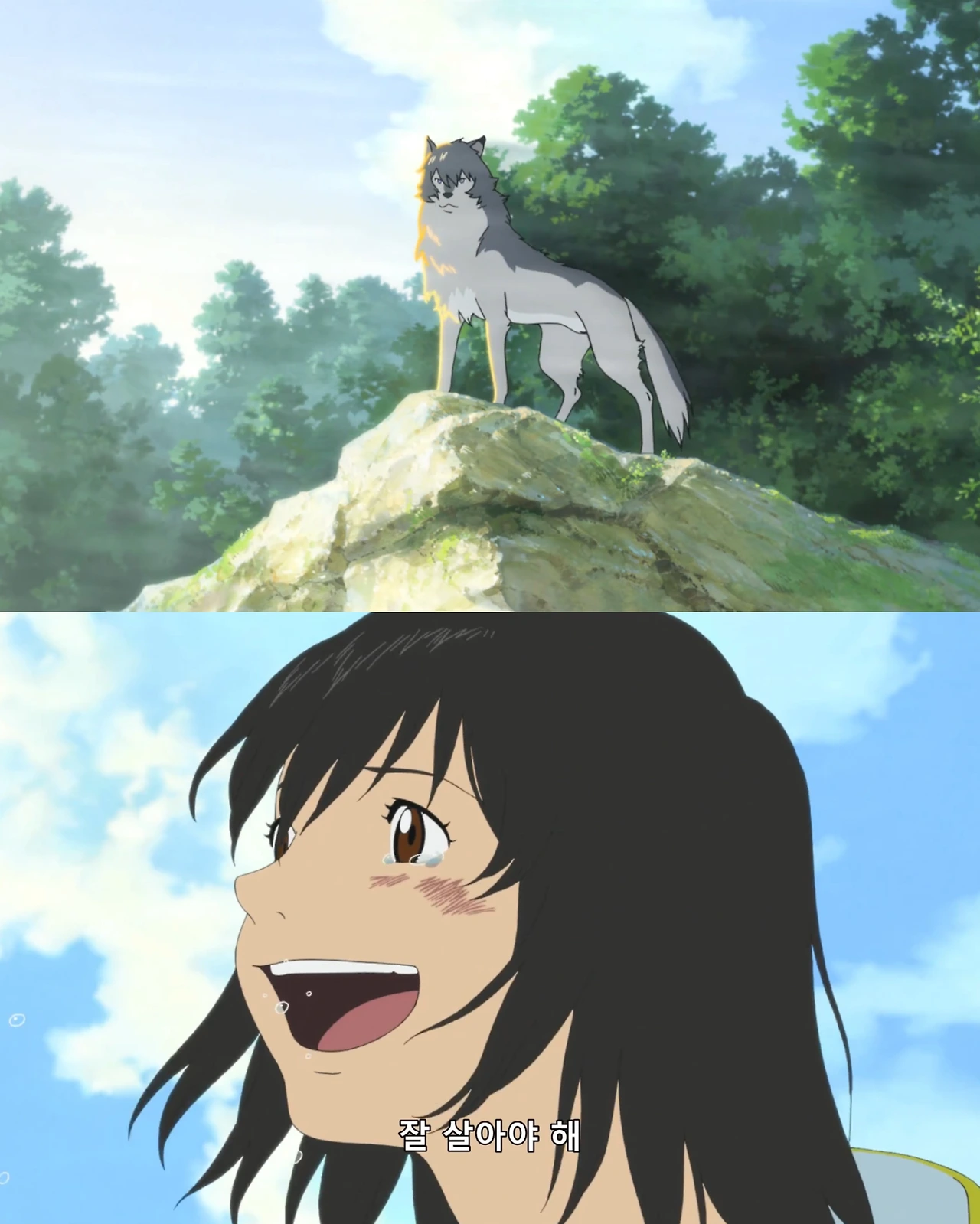 ‘나는 너에게 아무것도 해주지 못했는데’라며 자신의 부족함만을 탓하는 하나에게 아메는 어엿한 늑대의 모습으로 증명한다. 자신의 성장은 하나의 희생과 보살핌 덕분이었다는 사실을 말이다.
