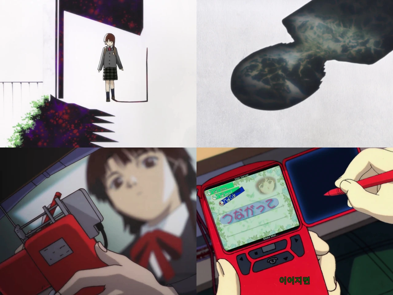 <Serial Experiments Lain(이하 Lain)>(1998)은 이 ‘연결된 세계’가 현대인에게 미치는 부작용을 집요하게 해부하는 작품이다. 서사와 설정은 지나치게 불친절하고 전개 또한 혼란스럽다. 사회적 불안이 팽배하던 당시 일본의 상황과 세기말이라는 시대적 변화가 맞물려 ‘난이도 조절을 무시한’ 철학적 작품이 탄생한 것이다.