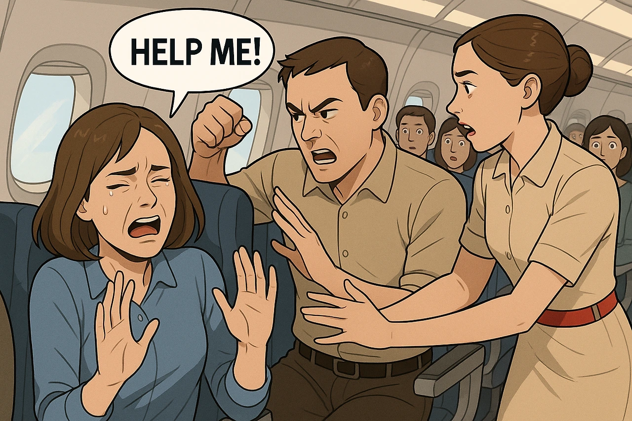 한 남편이 기내에서 자신의 아내를 주먹으로 쉼 없이 때렸다. 피를 흘리며 ‘help me!’를 외치는 아내를 무시하고 폭력을 가하는 남편을 크루가 제지하자 남편의 대답이 가관이었다.