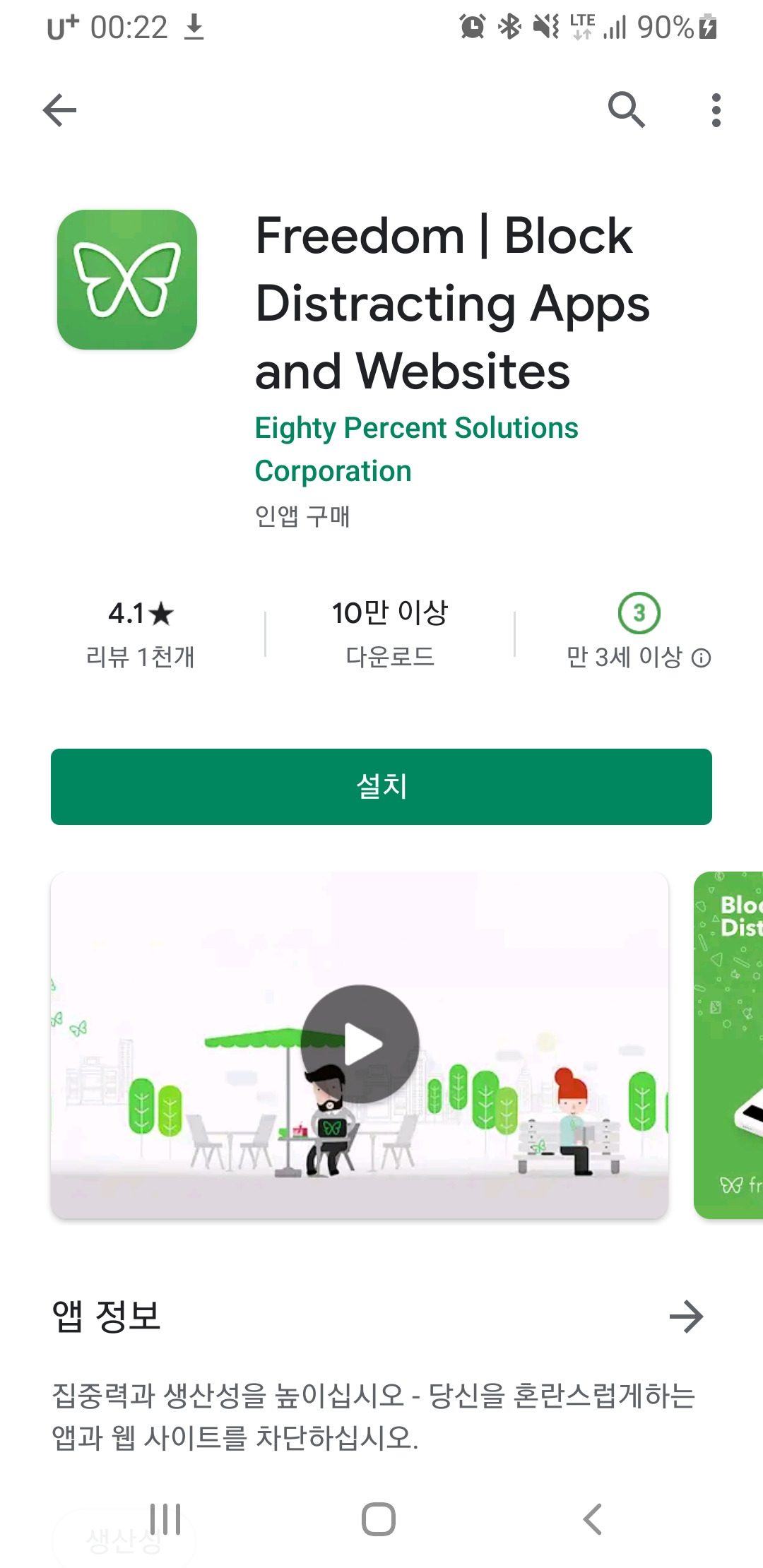 [타이탄의 도구들]이라는 책을 읽으며, [프리덤]이라는 어플을 알게 되었다. 이 어플은 자신이 설정한 시간만큼 스마트폰으로부터 어떠한 방해도 받지 않고 온전히 집중할 수 있는 기능을 제공한다. 오로지 집중할 수 있는 시간을 적극적으로 만들 수 있게 도와주는 어플인 것이다.