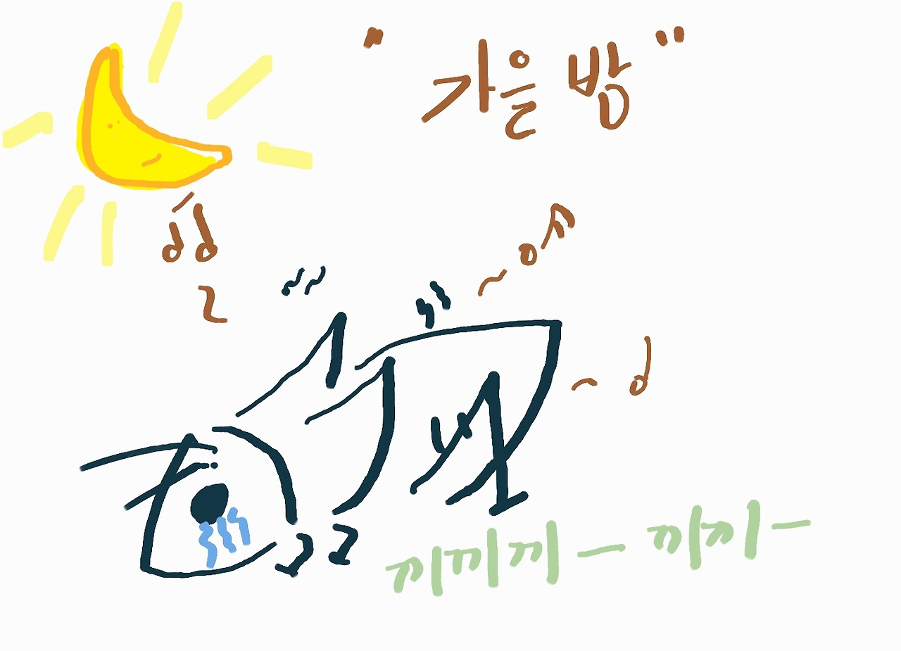첫째 표현처럼 귀뚜라미도 '끼끼끼--끼끼-'하며 운다. "이런 ASMR이 없지"라고 생각하고 피곤했던 주말을 뒤로한 채, 아이들을 재우며 '스-르-륵' 잠에 빠져들었다.
