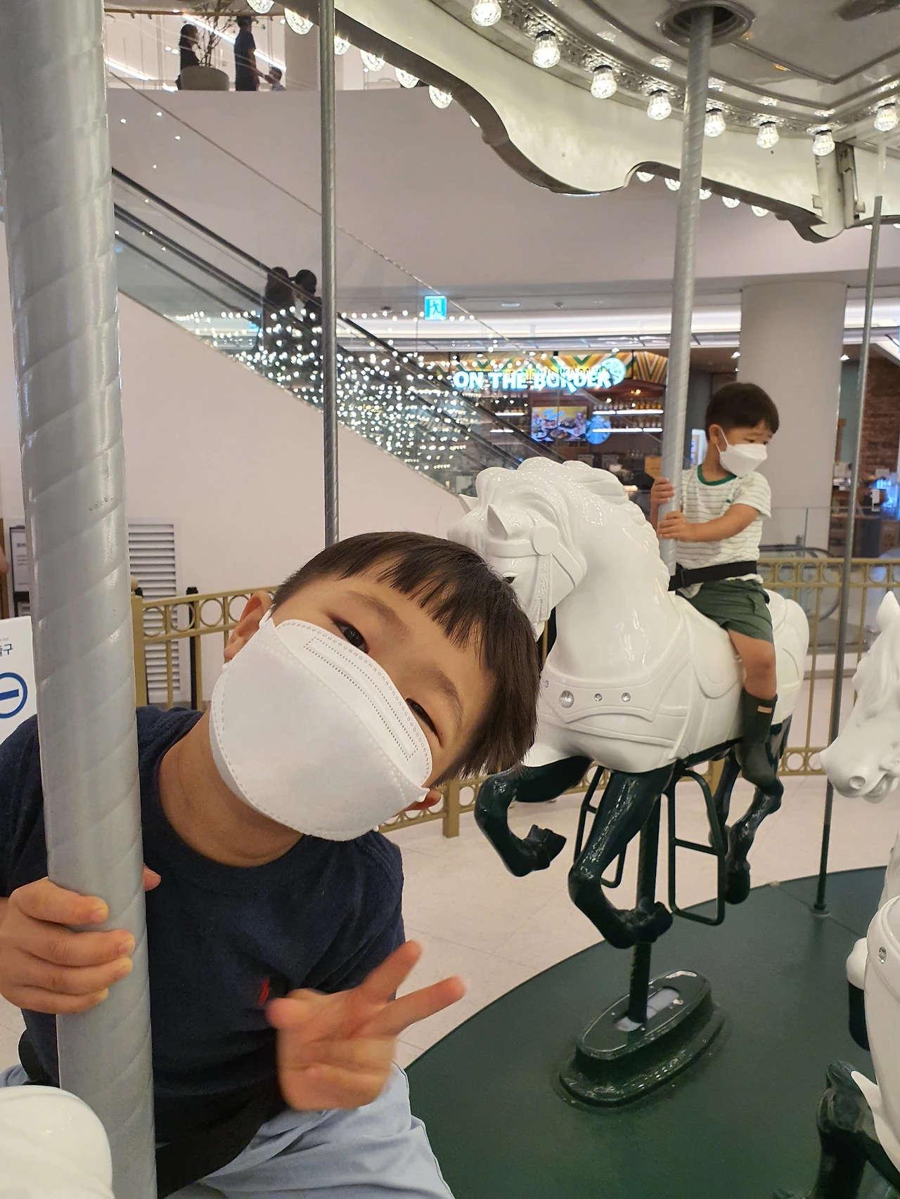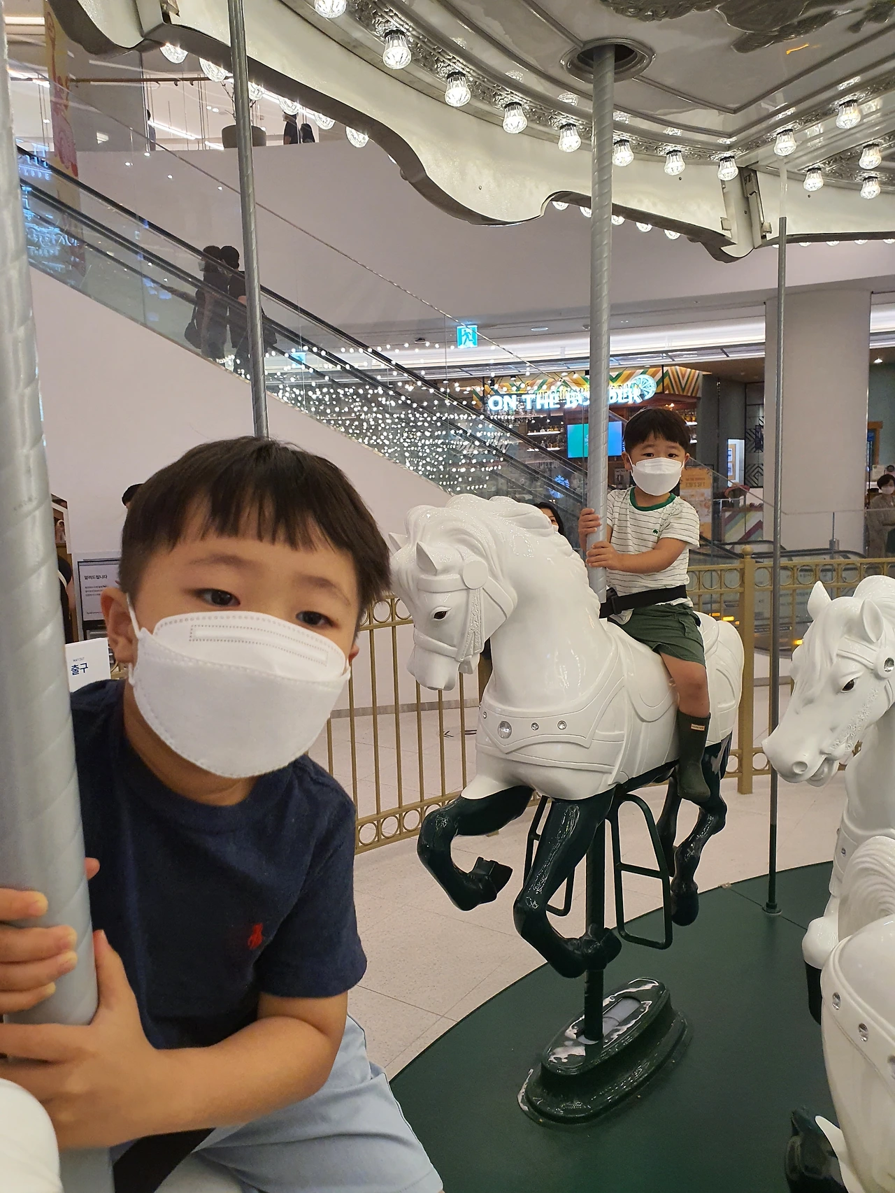 간신히 아울렛 입구에서 체온을 잰 시간은 집에서 나온 지 거의 두 시간이 지날 때 즈음이었다. 아내도, 아이들도 오랜만에 바깥에 나왔으니 뭐 맛있는 거라도 먹이고 작은 선물이라도 하나 사고 싶었지만 여건은 여의치 않았다. 급한 대로 아이들에게 아웃렛에 있는 회전목마를 태우고 아이스크림을 사줬다. 아내는 가지고 싶은 게 없다고 했다.