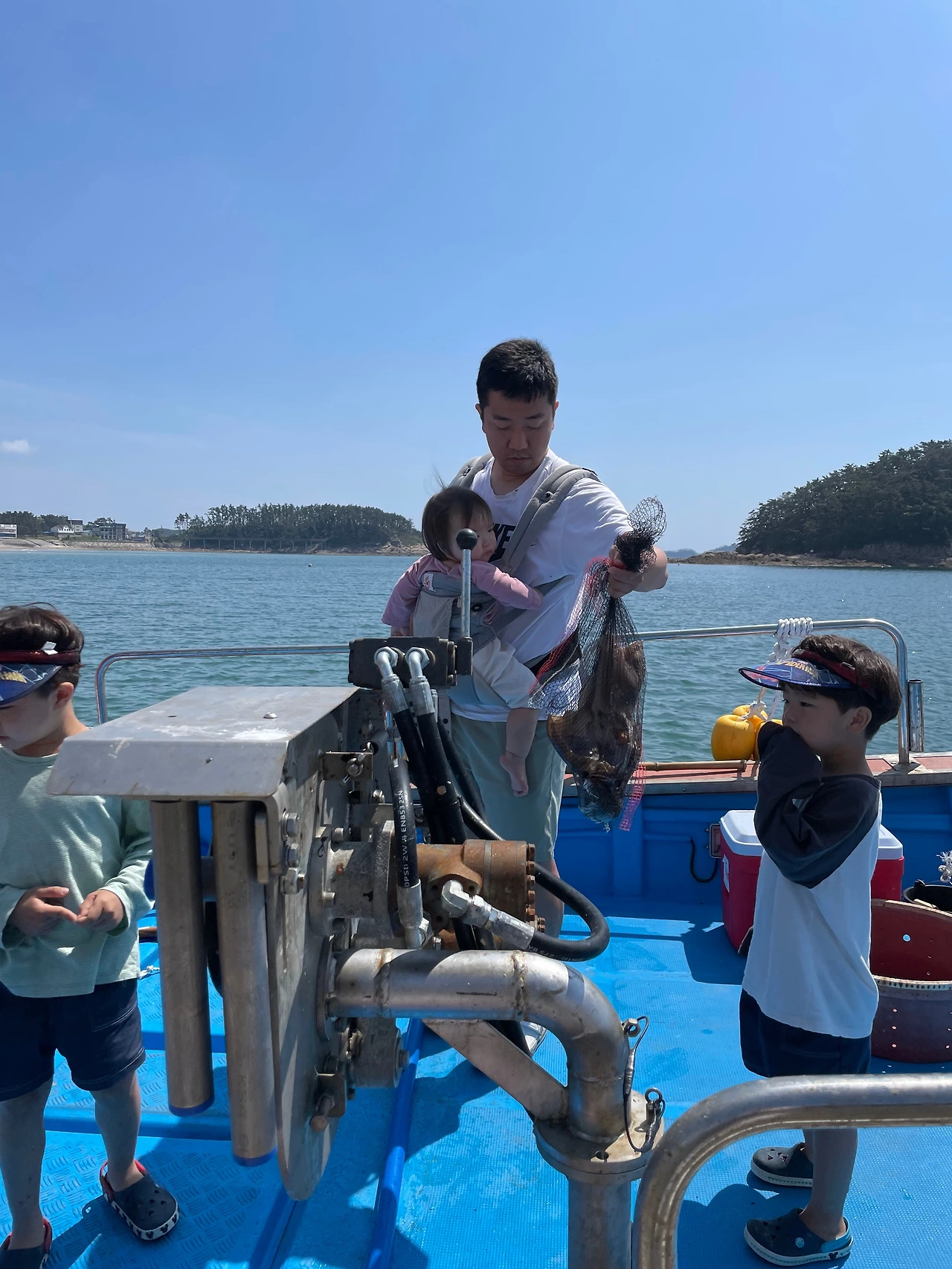 "아저씨 많이 잡으셨어요?" 말문을 띄우고 물고기를 좀 살 수 있냐고 물어봤다. 막 잡아온 활어를 네 마리 샀다. 그러면서 선장 아저씨에게 배를 구경시켜줄 수 있냐고 물었다. 아이들은 출렁거리는 배에 올라 여기저기 구경도 했고, 물고기도 만져보았다.