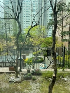 전원주택에 딸린 너른 마당은 아니다. 아파트에 딸린 한눈에 쏙 들어오는 작은 마당이다. 첫째 아이의 초등학교 입학을 앞두고 작년 말부터 통학거리가 괜찮은 집을 찾고 있었는데, 마침 학교에 바로 붙은 집을 찾게 되었다.