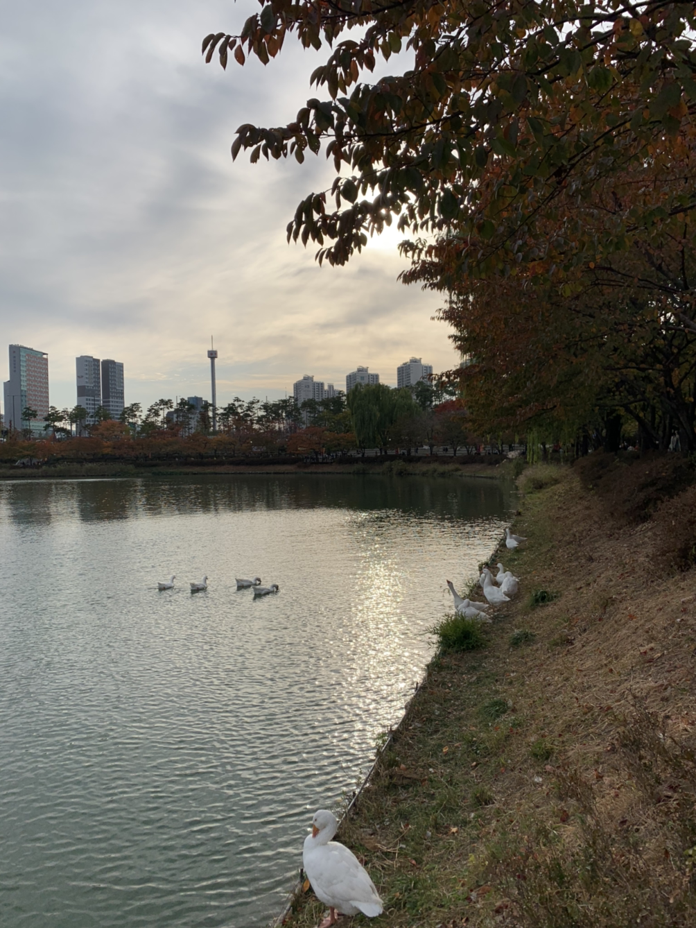 어느새 나무색이 다 불긋하다 마스크 쓴 사람들이 많이 나와있다. 다들 아쉬운 가을을 담으려 나왔겠지.