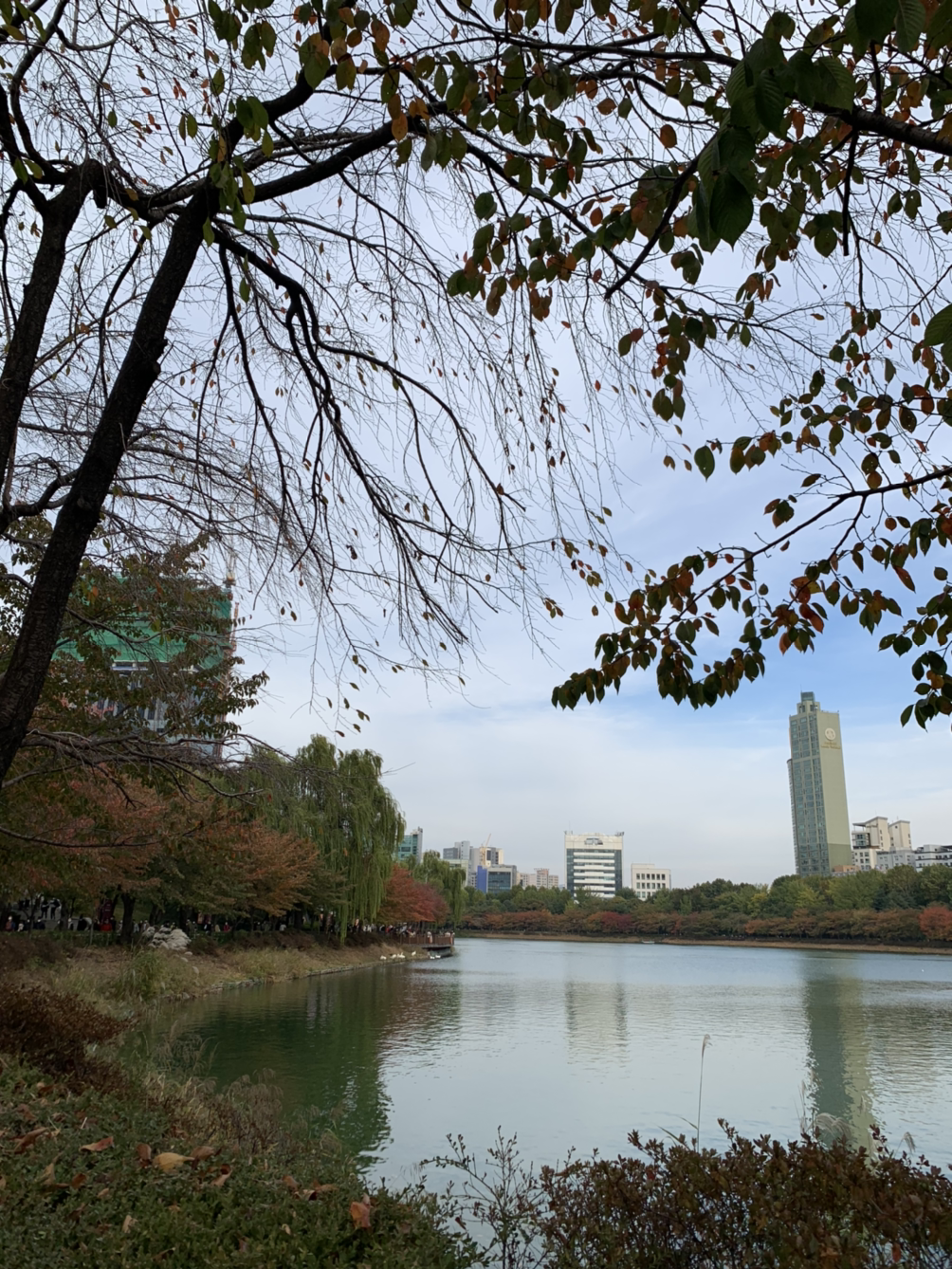 작년엔 11월 초에 단풍놀이를 갔었는데 올해는 이러다 단풍도 못 보겠다 싶어, 석촌호수를 한 바퀴 돌았다.