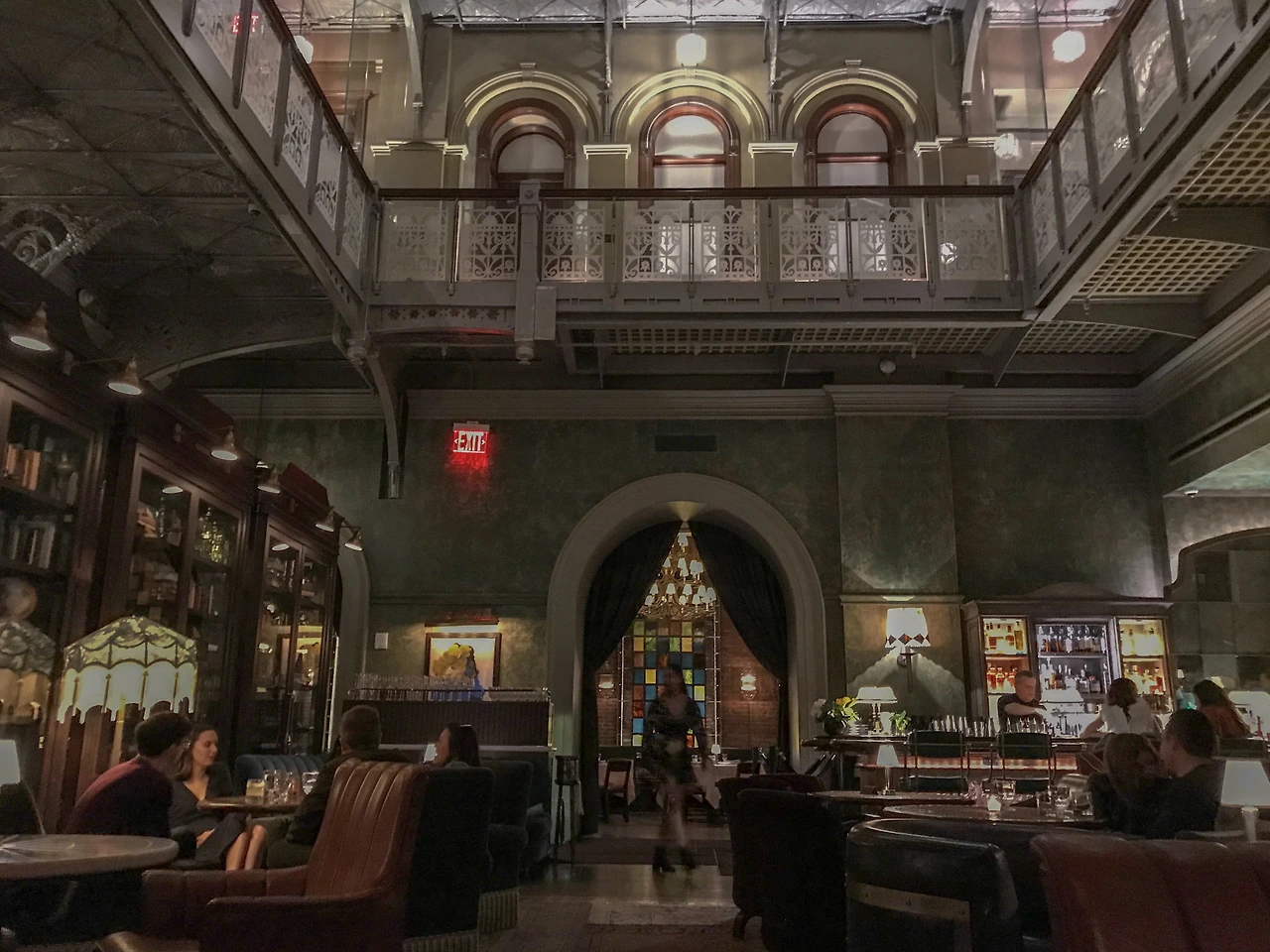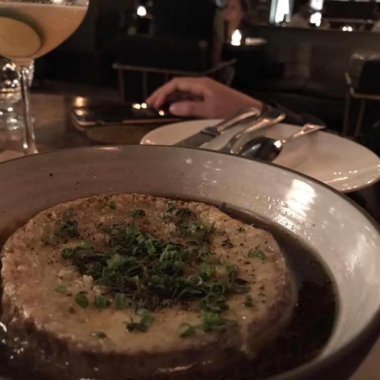 다운타운에 머물 때 괜찮은 바를 찾다가 숙소 근처에서 운 좋게 발견했다. 브루클린 브릿지에서 거센 바람을 실컷 맞아서 춥고 으실으실한데, 프렌치 어니언 스프를 먹자마자 몸이 스르르 녹았다. 여유를 되찾고 주위를 둘러보니 으리으리한 내부 전경이 눈에 들어온다. 그리 넓은 공간은 아니었지만 높은 천장과 고풍스러운 인테리어 덕분에 오래된 성당 안에서 술을 마시는 이색체험 같기도 했다.