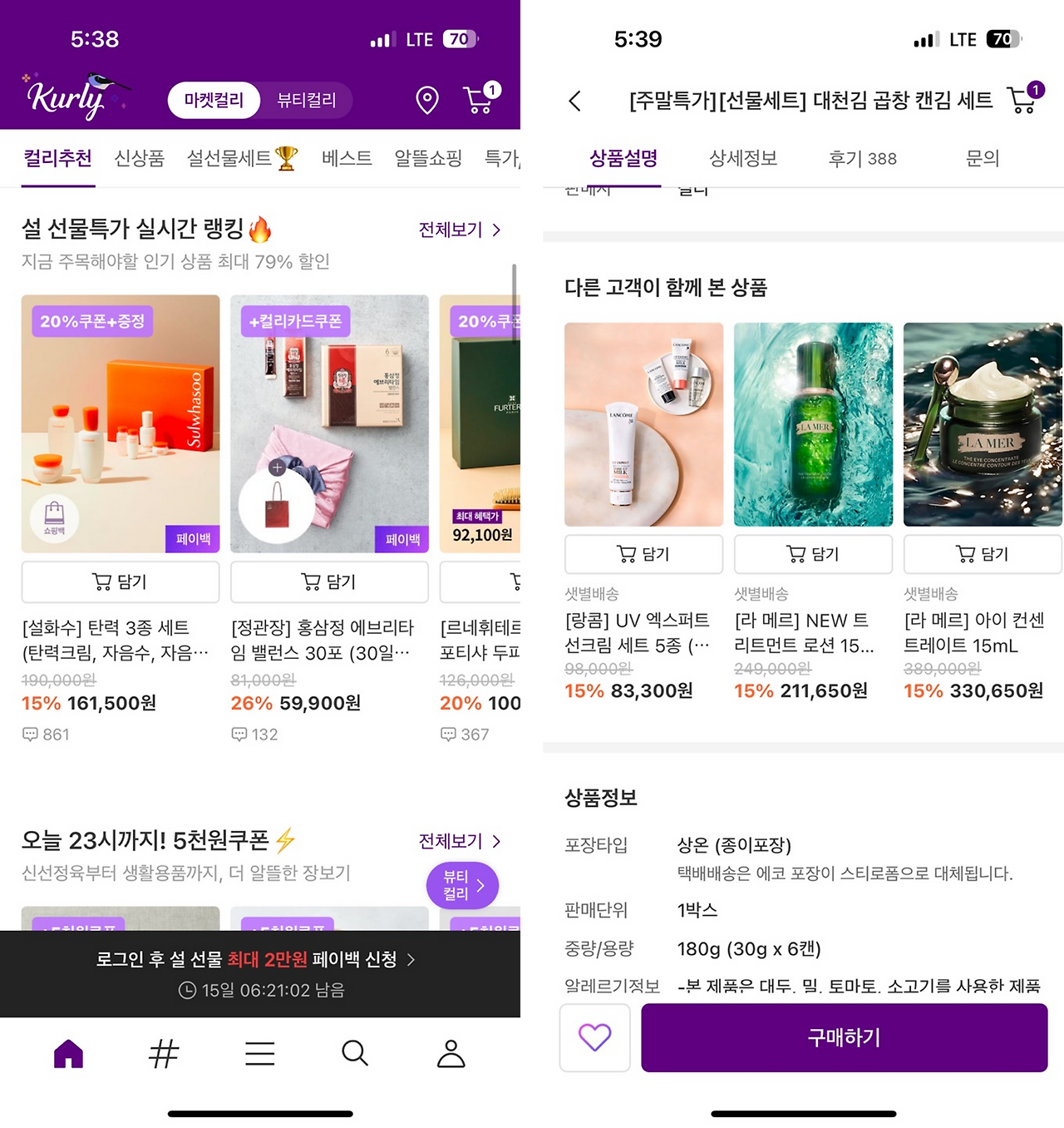- 사실 나는 컬리의 찐 팬인데, 이유는 지속적 리텐션을 위해 쿠폰을 계속 보내준다.. 안쓸 수가 없다. 아마 쿠폰의 반응율 등을 보고 CRM 메세지를 계속 날리는 듯 싶은데 나에게 아주 잘 먹히고 있다.
