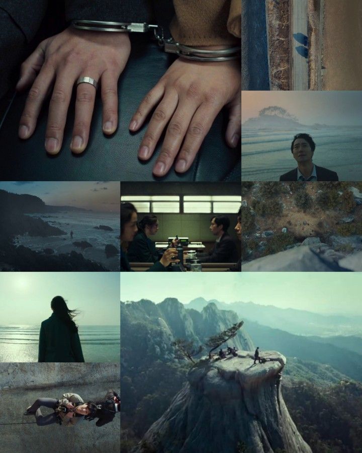 영화사 모호 필름을 각인시키는 사격으로 영화는 시작하고 해준은 5라고 쓰인 오각형 프레임에, 수완은 4라고 쓰인 사각형 프레임에서 각자의 사격지를 확인한다. 프레임 5와 4는 자연스럽게 사람과 사람을 구분한다. 사람은 물리적인 차이로 경계가 생기고 각자는 5와 4로 살아간다. “우리가 해결해야지, 너랑 나” 대사처럼 어떤 사건들로 너와 나는 우리가 된다. 사격장에서 방아쇠를 당겨진 총알은 처음과 끝을 향해 표적지를 향해 날아가고 삶은 그렇게 한 순간과 같다. 우리는 각자 한 순간을 살고, 너와 나 사이는 어떤 사건을 통해 다시 연결된다. 가로로 놓여 있는 프레임 5와 4를 수직으로 세우면 8자로 보이고 이는 <헤어질 결심>을 관통하는 숫자로 쓰인 메시지다. <헤어질 결심>은 너와 나의 경계와 연결을 보여주는 숫자 8을 첫 장면부터 제시한다.