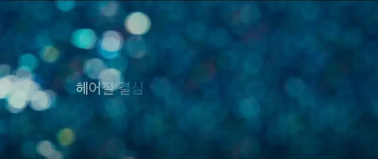 <헤어질 결심> text는 영화 시작, 마지막 그리고 포스터에는 서로 다른 모양의 text를 사용하고 있다. 시작에서 보여주는 <헤어질 결심> text에는 ‘ㅇ’만 속이 비어있고 ‘헤어’를 제외한 글자들이 희미하거나 줄무늬가 있다. 그리고 ‘어질’ 위에 빨간색 불이 반짝이다 어두운 화면에 물방울 같은 파란색 화면들이 물결치듯 교차하고 빨간색 재킷을 입고 죽은 기도수가 나온다. 영화 시작 text에 ‘ㅇ’만 투명한 이유는 해준과 서래가 아직 서로의 마음을 확인하지 못했고 해준이 해파리가 아니기 때문이다. 하지만 서로의 마음을 확인하고 각자의 길을 걷는 엔딩에서 text는 모든 텍스트가 하얗게 지워져 있고 점 8개가 표기된다. 그리고 포스터에 쓰인 text에는 글자마다 전부 속이 지워져 있고 투명하게 보인다.