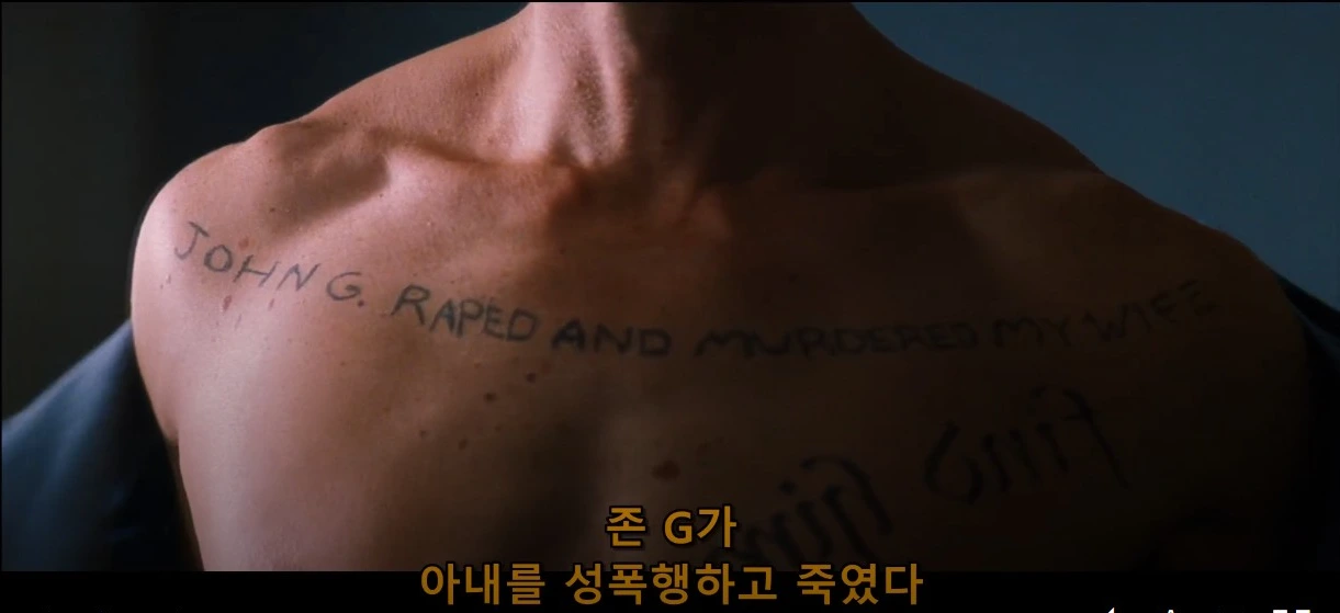 레너드는 캐서린을 살해한 범인을 존G라고 믿지만, 레너드 자신이 캐서린을 살해했기 때문에 레너드는 존G가 된다. 그래서 'My Wife Murdered and Raped John G'는 캐서린이 존G 즉 레너드를 살해하고 그의 기억을 강탈했다는 의미로 읽을 수 있다. 이는 레너드를 움직이는 명령자가 My Wife 캐서린이라는 사실을 보여준다. 하지만 레너드는 자신이 존G임에도 불구하고 존G를 쫓으며, 결코 그를 붙잡을 수 없다. 이는 라캉의 기표연쇄 체계에서 문자의 위치가 바뀌며 의미에 도달하지 못하는 상황과 유사하며, 포의 '도둑맞은 편지'를 분석한 라캉의 이론과 맞닿아 있다.
