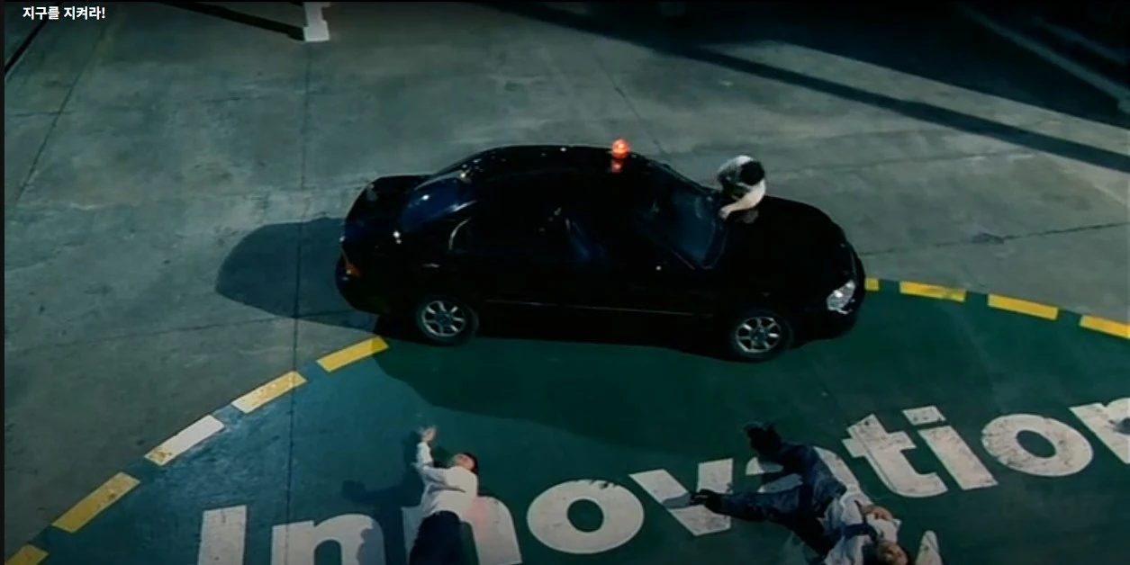 병구는 외계인으로부터 지구를 지키고, 강만식은 인간의 폭력성 때문에 지구를 포기한다. 그러나 순이는 병구를 지키고, 병구를 지킴으로써 외계인에게 지구를 지키는 것을 보여준다. <지구를 지켜라>의 진정한 영웅은 여성 순이다. 달처럼 순수하고 맑은 그녀는 병구를 끝까지 사랑하며 지키려 애쓰고, 결국 목숨까지 바친다. 병구가 죽고 강만식이 주차장에서 우주선에 실려 올라가는 순간, 바닥에는 'Innovation(혁신 : 가죽을 벗겨내다, 즉 인간의 껍데기를 벗겨낸 외계인인 정체)'이라고 글자가 쓰여 있다. 강만식이 안드로메다 왕자 본인으로 드러나고, 지구는 폭발한다.