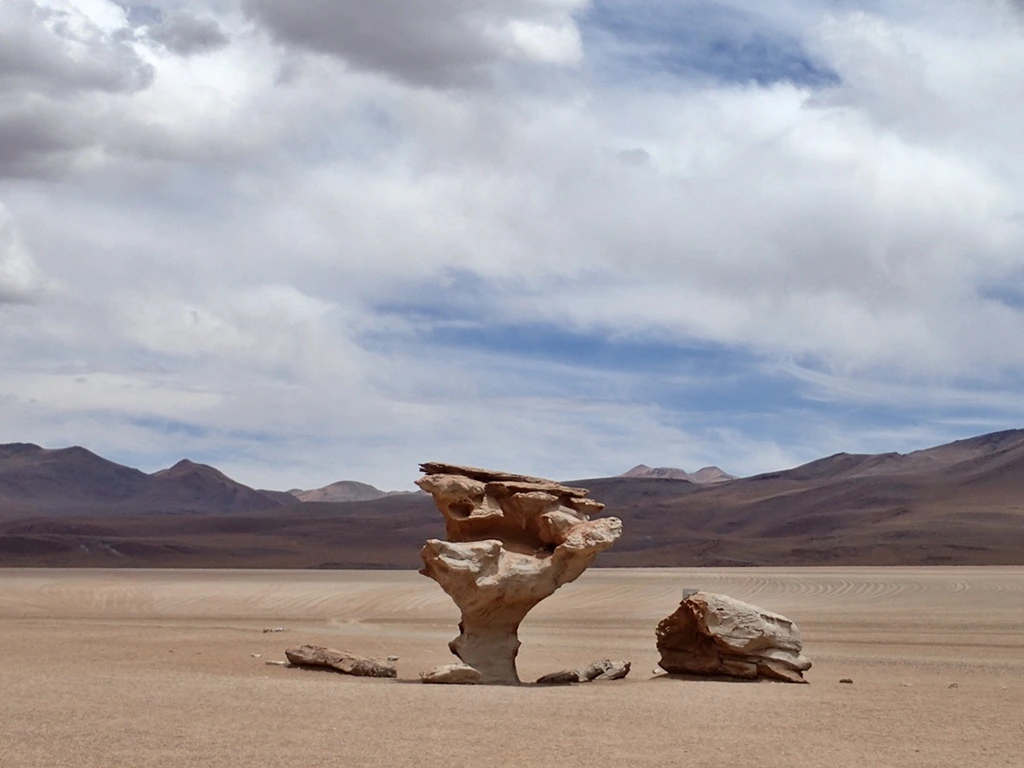 우유니에서 칠레 북부의 아타카마 사막에 이르는 알티플라노 지역을 사륜구동차를 타고 이동하는 그 2박 3일은 다른 행성에 다녀온 듯한 생경한 이미지도 각인되어 있다. 마치 영화 속에 봤던 화성의 표면처럼 거대한 화산석이 여기저기 흩어져 있는 평원에는 나무 한 그루 보이지 않았고 지평선의 경계에는 하얀 연기를 흘리고 있는 화산이 톱니 모양으로 둘러싸고 있었다. 한참을 달리다 나온 핑크빛 호수에는 거짓말처럼 플라밍고 한 무리가 외다리로 서서 나를 쳐다보고 있었으며 이어서 만난 녹색의 호수에는 동그란 눈망울의 야마 무리가 물 위를 걷고 있었다. 기괴한 모양의 거대한 나무가 서 있구나 라고 생각했지만 이윽고 아슬아슬하게 균형을 잡고 서있는 바위라는 것들 깨달았으며, 부글부글 끓는 땅 사이로 유황 냄새가 나는 수증기가 하늘 높이 기둥을 이루는 숲을 만나기도 했다.