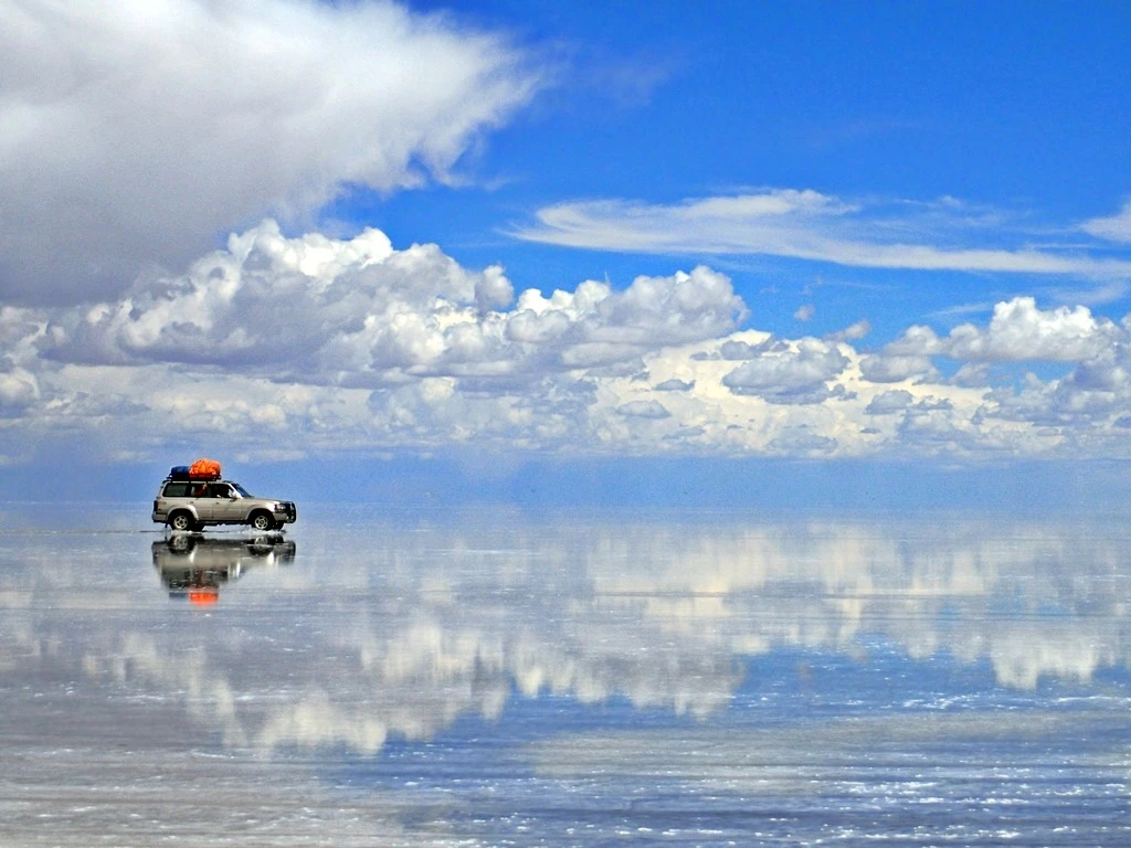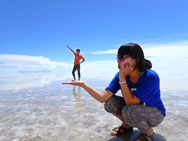우여곡절에 도착한 우유니 소금사막은 명불허전이라는 말이 절로 나올 만큼 놀라운 곳이었다. 눈 앞에 펼쳐지는 비현실적인 풍경이 왜 그토록 많은 사람들이 우유니에 가기를 꿈꾸는지 한 번에 설명해 주었다. 우유니 소금사막으로 가는 전초기지 격인 우유니 마을에서 사륜구동차를 타고 1시간 정도를 달리자 눈앞에 끝이 보이지 않는 거대한 빈 공간이 나타났다. 마침 내가 찾아갔던 시기가 우기의 끝자락이어서 우리나라 전라남도와 넓이가 비슷하다는 거대한 평원이 잔잔한 물로 가득 차 있었다. 360도 어딜 봐도 지평선을 기준으로 데칼코마니처럼 하늘을 비추고 있는 비현실적인 공간을 차로 달려 그 한가운데에 이르러서 내렸다. 맨발로 잔잔한 물 위로 하늘이 땅인지 땅이 하늘인지 모를 판타지 소설 속 같은 공간을 걷는 느낌은 마치 꿈속에 헤매는 듯한 기분마저 들었다. 그 우유니가 더 신비로웠던 이유는 눈앞에 압도적인 공간감이 펼쳐지는 가운데 귀로는 아무런 소리도 들리지 않아 몽환적인 분위기가 느껴졌기 때문이었다. 소리를 반사시켜줄 어떤 것도 없이 완벽하게 빈 공간이었기에 내가 만들어내는 소리를 제외하고는 소음이 전혀 없는 무서우리만큼 고요한 공간이었다. 사후 세계가 있다면 혹시 이런 느낌이지 않을까 하는 생각마저 들었다. 사물과 소리가 사라진 공간, 그 비현실적인 고요의 공간에서 나는 지금껏 익숙했던 세상의 경험을 잊고 새사람이 되는 듯한 기분을 느꼈다. 어느새 마음속에 머물던 일상의 권태로움은 사라지고 없었다.