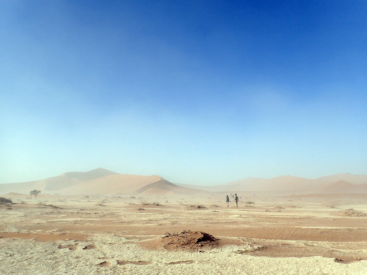 플라이(Vlei)는 아프리칸스어로 습지라는 뜻으로, 소수스플라이는 삭막하고 건조한 나미브 사막에 간혹 비가 내리거나 물이 차오르면 습지가 되는 곳이었다. 지금은 당연히 바짝 말라서 물기의 흔적을 찾을 수 없지만 단단하게 다져진 진흙판과 식물의 흔적으로 한때는 오아시스 같은 곳이었겠구나 유추할 수 있었다. 한때는 물이 있었고 푸르름이 있었지만 지금은 그 무엇도 살 수 없는 공간을 보면서 누구에게나 빛나는 순간이 있다는 말이 떠올랐다. 잠시 소수스블라이가 빛나던 그 순간을 상상해 본다. 끝없이 펼쳐진 사막에 영롱한 푸른 점이었을 순간. 이런 영원과 순간에 대한 감상은 잠시 뒤에 만난 데드플라이에서 정점을 찍게 되었다.