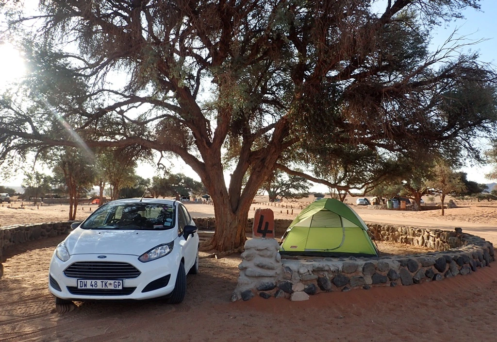끝없는 황무지 끝에 마치 신기루처럼 나타난 세스리엠 캠핑장은 기대 이상으로 시설이 좋았다. 나미비아의 대표 관광지인 만큼 나미비아 관광청이 운영하는 리조트인 NWR (Namibia Wildlife Resorts) 소속의 캠핑장이었다. 직원들은 대부분 친절하고 쾌활해서 언제 어디서 마주쳐도 기분 좋게 해 주었고, 합리적인 가격의 식당과 매점 덕분에 종일 모래 언덕을 걷고 온 피곤한 몸을 이끌고 식사를 준비해야 하는 수고를 덜 수도 있었다. 캠프 사이트는 커다란 나무 아래에 둥글게 돌담이 쳐져 있는 독립 공간이라서 다른 여행자의 간섭을 받지 않을 수 있고, 화장실, 샤워실 같은 공용 공간도 기대보다 깨끗하게 관리되고 있었다. 우리는 집채만 한 나무 아래에 텐트를 치고 해가 지기 전에 나미브 사막의 석양을 볼 수 있다는 엘림 듄으로 향했다.