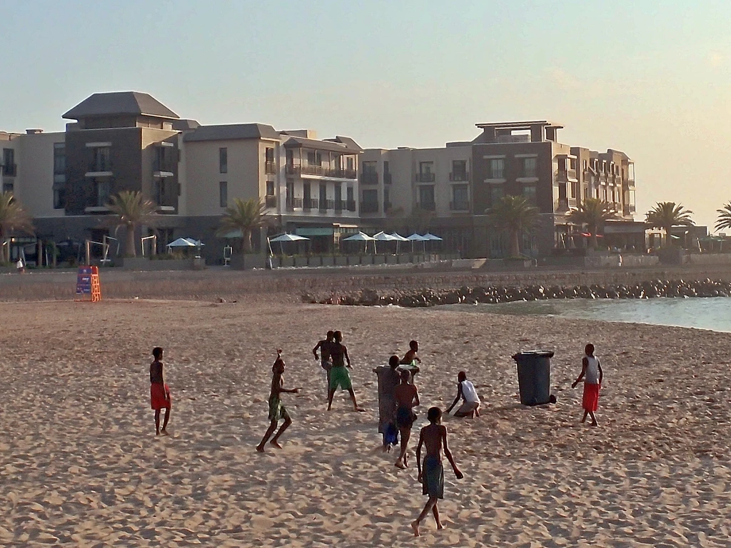 어제 스바코프문트에 도착했지만 사실 시내 모습을 거의 보지 못했다. 늦게 도착한 탓도 있었지만 장거리 이동을 한 이후라 잘 챙겨 먹고 푹 쉬는 것이 중요했기에 무리해서 돌아다니지 않았다. 느지막이 일어나 아침 식사를 하고 숙소를 나서자 발길은 자연스럽게 바다로 향했다. 그토록 갈증을 불러일으켰던 바다가 눈앞에 펼쳐졌다. 아프리카의 대표적인 휴양지답게 스바코프문트의 바다는 눈부시게 청명했다. 해변 가운데에는 짙푸른 대서양을 향해서 길게 선착장이 뻗어 있었다. 1905년에 만들어졌다는 낡은 선착장은 지금은 정박을 위한 용도보다는 고급 레스토랑으로 활용하고 있었다. 선착장을 지나 해변을 따라 걸었다. 팜 비치라고 불리는 긴 모래사장에는 거친 바람 때문인지 휴양을 즐기는 사람들은 드물었다. 대신 바닷바람을 가르고 천방지축으로 뛰어다니며 축구를 하는 동네 꼬마들을 볼 수 있었다. 어딜 가든 저렇게 신나게 공을 차는 아이들을 보면 문득 그 속에 뛰어 들어가 함께 뒹굴고 싶어 진다. 하지만 얌전한 여행자는 관찰자 역할을 할 뿐 선뜻 그들의 삶 속으로 들어갈 용기를 내지 않았다. 어쩌면 여행 소개 프로그램에서 자연스럽게 현지인들과 어울리는 출연자를 보면서 여행지에 가면 으레 그래야 한다는 부담감이 심어진 것은 아닐까 싶다. 그러나 나에게는 한번 지나가는 여행지일 뿐이지만 그들에게는 평범한 일상이기에 그들의 삶에 굳이 얼룩을 남기고 싶지는 않았다.