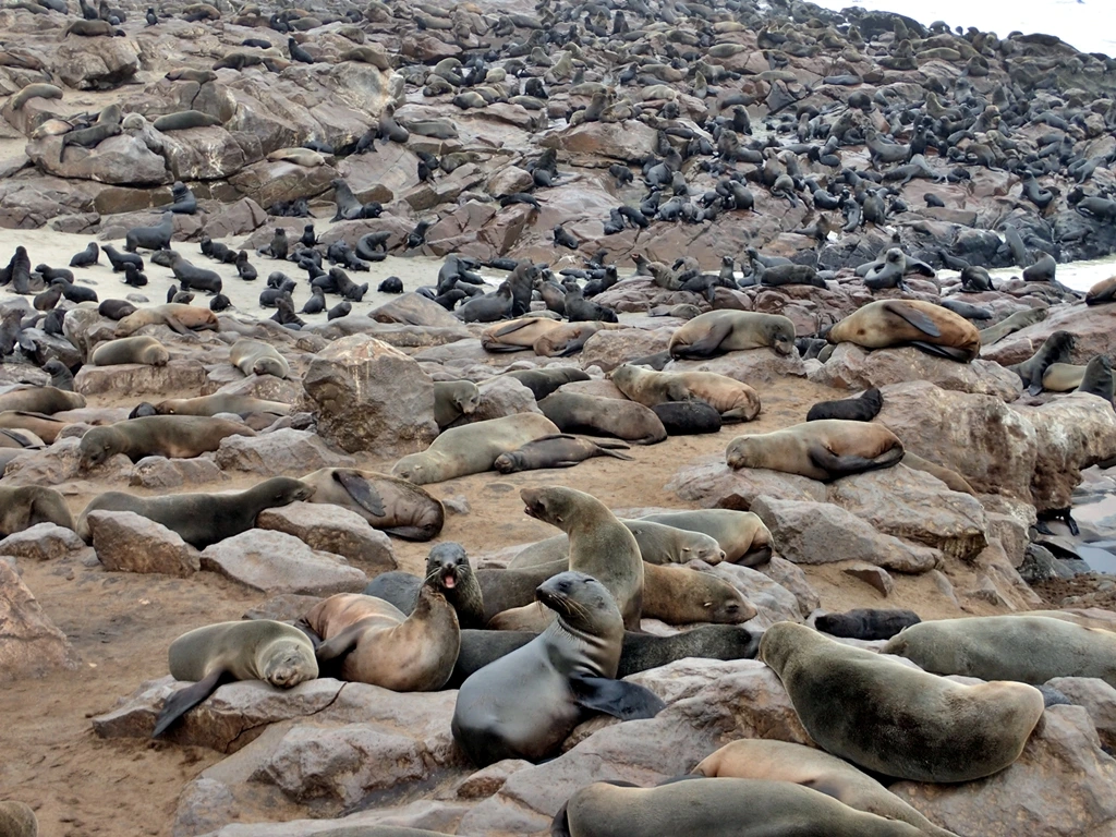 드문드문 해안에 걸쳐져 있는 난파선을 보며 한참을 달려서 케이프 크로스에 도착했다. 차에서 내리자마자 가장 먼저 나를 놀라게 했던 것을 코를 찌르는 냄새였다. 그 냄새 너머에는 수백수천 마리의 바다사자들이 빼곡히 자리 잡고 누워있는 모습이 눈에 들어왔다. 아마 아주 멀리서 본다면 바위가 아주 많은 해변으로 보였겠지만, 실상은 셀 수 없이 많은 바다사자들이 일광욕을 하고 있었다. 그 바다사자들의 틈바구니를 가로지르는 나무데크길을 따라 살금살금 그들 무리 안으로 들어갔다. 늘어져서 거드름을 피우고 있는 수컷과 갓 태어난 듯한 새끼를 품고 있는 암컷 무리들, 쉴 새 없이 장난을 치는 아이들까지 손을 뻗으면 닿을 것 같은 거리에서 지켜볼 수 있었다. 간혹 동물원에서 한 두 마리 바다사자를 볼 때면 내가 관람자가 되어 그들의 재롱을 구경했지만, 이 곳에서는 전세가 역전되었다. 수천 마리의 바다사자들은 편하게 누워서 오늘 온 새로운 인간 무리를 구경하고 있었다. 내 일거수일투족이 주목받는 기분이 들었다. 강렬한 야생의 기운을 도저히 이겨낼 수 없었다. 그리고 강렬한 야생의 냄새도 나를 녹다운시키기 충분했다.