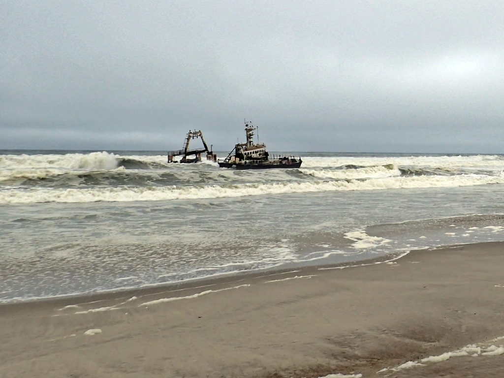 대서양 너머로 해가 지는 모습을 보고 숙소로 돌아와서는 어제 못다 이룬 육식의 한을 풀기 위해 숙소 주방에 꽤 오랜 시간을 머물렀다. 그러던 중에 주방에서 만난 여행자들에게 흥미로운 정보를 얻을 수 있었다. 스바코프문트에서 해변을 따라 130여 킬로미터를 올라가면 케이프 크로스 (Cape cross)라는 장소가 있는데 바다사자가 집단으로 서식하는 곳이라고 했다. 아프리카에서 야생 바다사자가 엄청 많은 곳이라니, 어찌 그냥 지나칠 수 있겠는가. 다음날 일찍 전날 주방에서 만난 여행자들과 함께 바다사자를 만나러 떠났다. 스바코프문트를 벗어나자마자 풍경은 또다시 극단적으로 단조로워졌다. 오른쪽에 누런 사막, 왼쪽에는 푸른 바다. 그런데 흐리고 안개가 자욱한 바다의 모습이 심상치 않았다. 바다 쪽을 바라보면 약간 흐린 날씨 인가 싶었는데 오른쪽의 사막을 보면 해가 쨍쨍 내리쬐고 있는 이상한 날씨였다. 나미비아 앞바다로 Benguela 한류가 흐르고 사막의 뜨거운 공기와 만나 항상 안개가 자욱하다고 한다. 그래서인지 거친 해류와 얕은 수심에 안개가 더해져 수많은 배들이 좌초되는 것으로 유명하여 이곳을 스켈레톤 해안이라고 불린다고 한다.