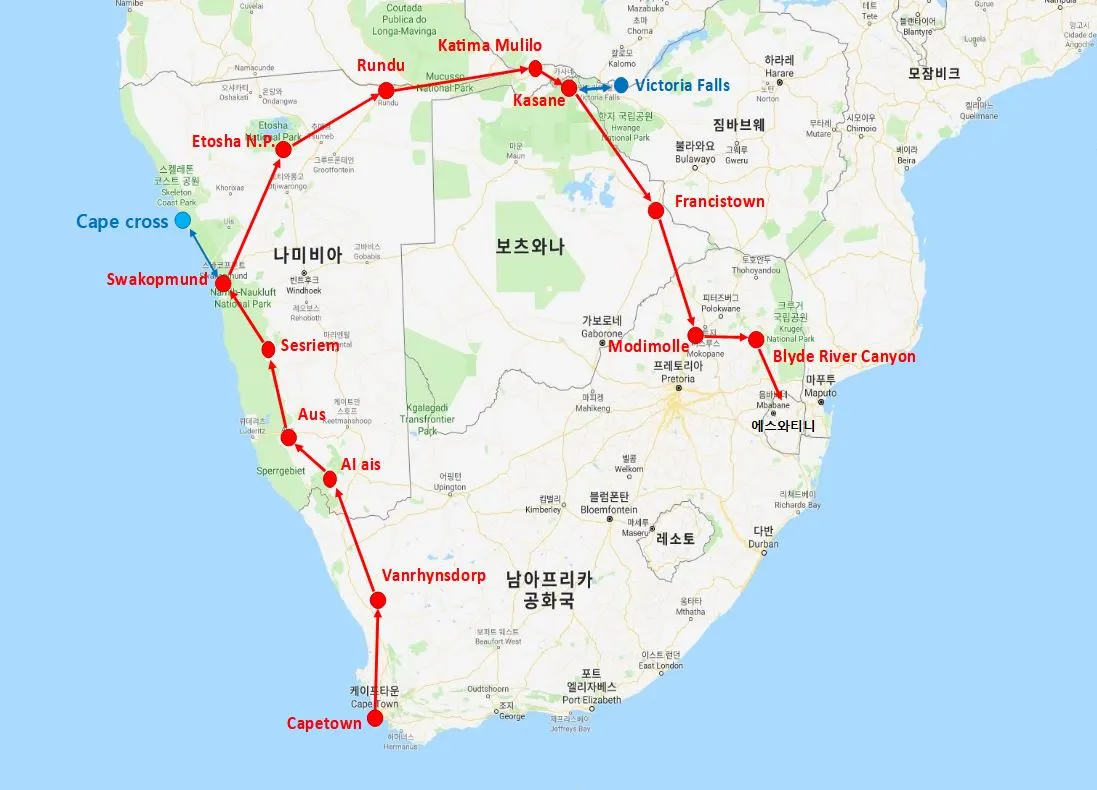 관광객의 모습으로 며칠을 지나는 동안 아내의 비자 만료일은 성큼성큼 다가오고 있었다. 사실 우리도 아무런 대책 없이 시간을 보낸 것은 아니었다. 출국을 하라는 명을 받았으니, 진짜로 출국을 할 셈이었다. 다만 출국 후에 향할 곳이 한국이 아니었을 뿐이었다. 어차피 문제가 된 체류 일정을 재출국/재입국을 통해 다시 리셋해보려는 꼼수를 부리기로 했다. 캠핑장 리셉션에 받아온 지도를 펼쳐 놓고 가까운 국경을 찾아보았다. 다시 뒤로 돌아서 보츠와나나 짐바브웨로 가기는 싫었고, 가장 가까운 국경인 에스와티니 (당시는 스와질란드로 불렸으나 2018년에 국명을 에스와티니로 변경)로 향하기로 했다. 나라 이름도 생소한 그곳에 무엇이 있는지, 언어는 무엇인지, 통화는 어떤 것을 사용하는지, 여행할 만한 명소가 있는지 전혀 모른 채로 가장 가깝다는 이유 하나로 국경을 향해 달리기 시작했다. 사실 조금만 조사했었더라면 에이즈 감염률이 세계 최고라는 절대왕정국가를 선뜻 가겠다는 결정을 하지는 못했을 것이다. 여행 중에 즉흥적인 결정은 때로는 위험을 불러오기도 하고 가끔은 의외의 행운을 가져오기도 하는데, 이번 결정은 우리에게 어떤 결과를 가져다줄까 다시 한번 운에 몸을 맡겨보기로 했다.